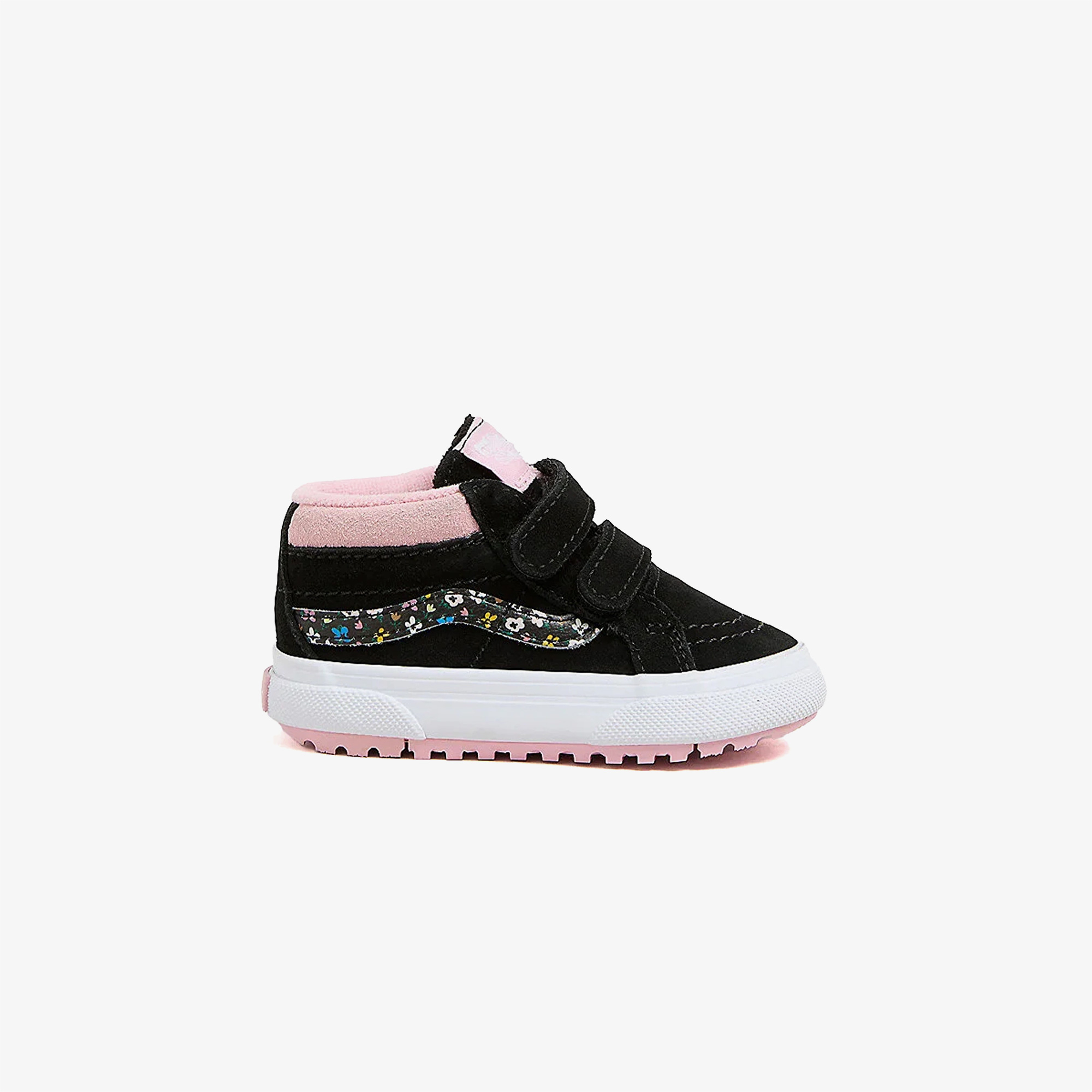 Vans Mte Sk8-Mid Reissue Hook and Loop Çocuk Siyah Pembe Sneaker, ikonik Sk8-Mid tasarımını zorlu hava koşullarına uygun hale getirerek küçük maceraperestler için dayanıklı ve konforlu bir seçenek sunuyor. Suya dayanıklı süet üst yüzeyi, sıçramalara ve hafif neme karşı koruma sağlarken, Primaloft izolasyonu soğuk havalarda sıcaklığı muhafaza eder. Kaygan zeminlerde üstün tutuş sağlayan özel dış taban tasarımı, güvenli bir yürüyüş deneyimi sunarken, UltraCush EVA iç taban ekstra konfor ve destek sağlar. Çift cırt cırtlı kapanışı sayesinde kolay giyilip çıkarılabilir yapıya sahiptir.
