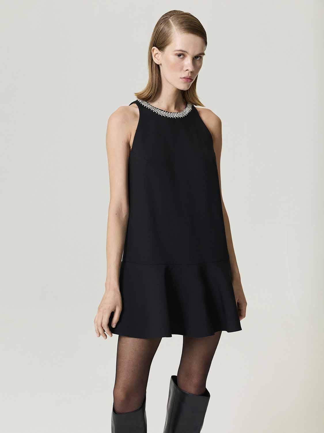 Şık ve feminen, fırfırlı etek ucuna sahip bu mini elbise, normal kesim ve pürüzsüz bir silüet için astarlı dokuma kumaştan üretilmiştir. Zarif taşlı detaylarla süslenmiş kolsuz askılı yakasıyla, görünümünüze ince bir ışıltı katar. Gizli arka fermuar ve eğlenceli fırfırlı etek ucuyla tamamlanan bu elbise, özel günler, akşam etkinlikleri veya dışarıda geçirilen bir gece için mükemmeldir. Kalıp: Regular Fit Astar: Astarlı Model Ürün Bedeni: XS Model Bedeni: Boy 1.77 / Göğüs 84 cm / Bel 57 cm / Kalça 87 cm
