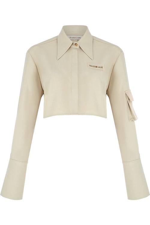 Uzun Manşetli Gömlek, Luce Del Sole’nin zamansız ve Modern kodlarını sergiliyor. Gömlek Geniş yaka detayı ve önü düğmeli kapatma ile geliştirilmiş kısa bir kesime sahiptir. Ön kısımda ‘WABISABI’ imzalı Nakış logo süslenmiştir.Özel bir görünümü tamamlamak için koleksiyondan kısa bir etekle şekillendirilebilir.