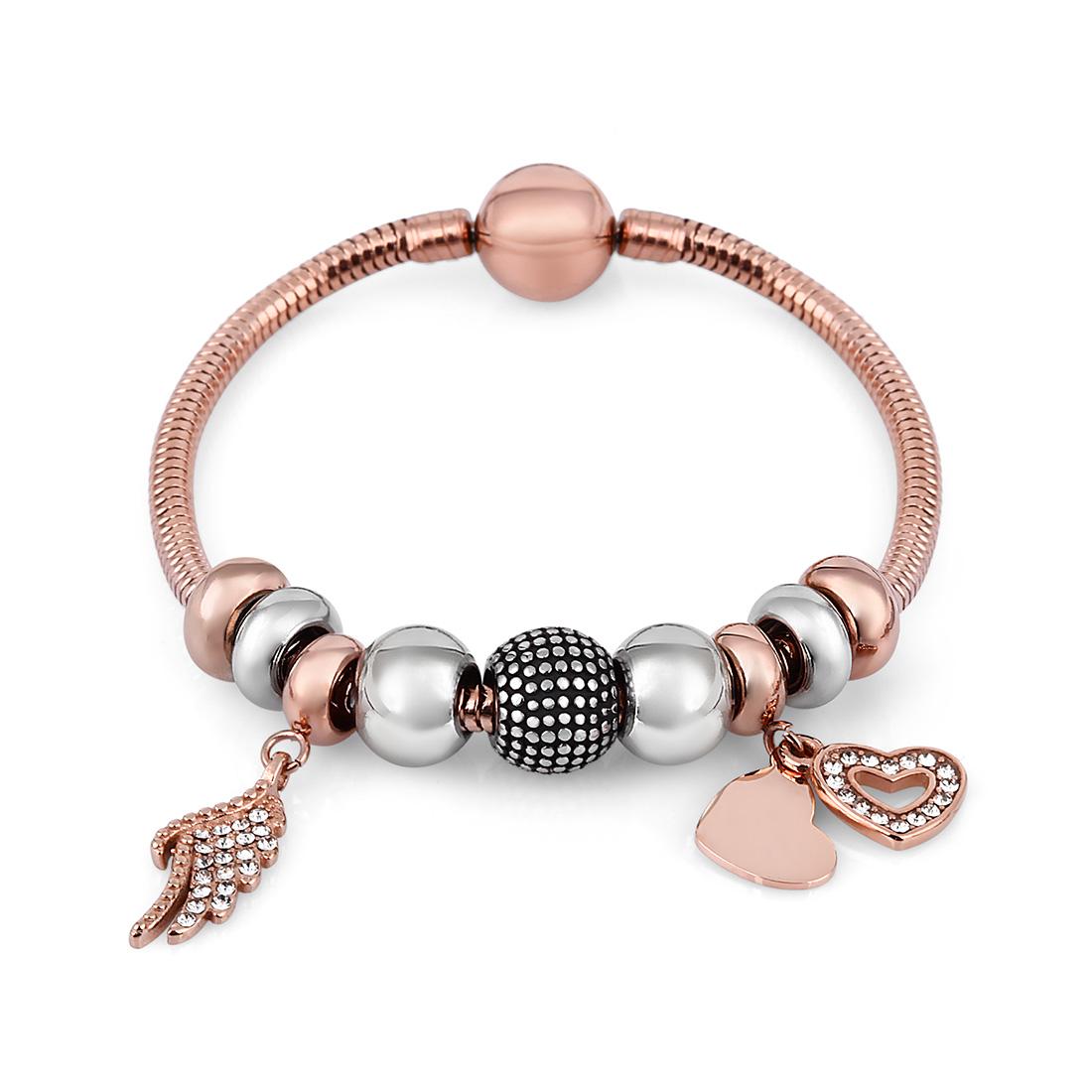 Rose Gold Renk / Çelik Materyal / Taşlı / Kalp Takı Şekli / Bileklik