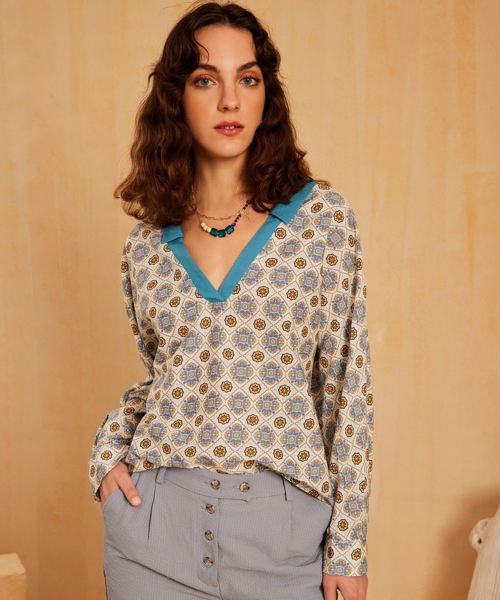 Retro esintiler taşıyan özgün deseniyle göz kamaştıran yaka detaylı gömlek, farklı stillerdeki kombinleri eşsiz şekilde tamamlar. Rahat kesimi ile dikkat çeken bu tasarım, pamuk ve viskon karışımı kumaşıyla da büyük konfor sunar. Bu zamansız parçayı kumaş pantolon ve yüksek topuklu ayakkabılarla bir araya getirerek iddialı bir stil yakalayabilirsiniz.