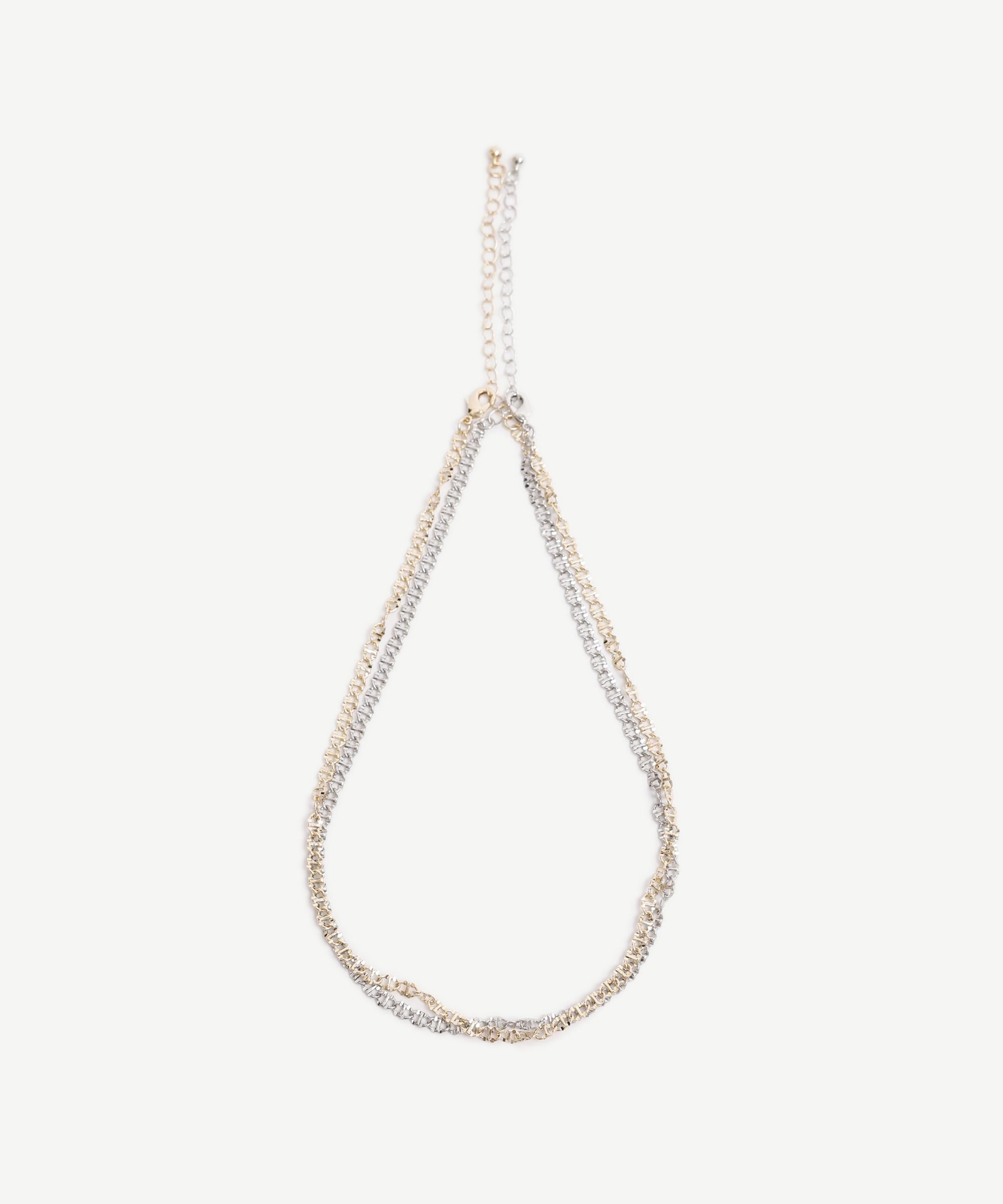 İki tonlu zarif yapısıyla öne çıkan bu bileklik, ince işçiliğiyle modern ve sofistike bir duruş sunar. Günlük kombinlerinize hafif bir ışıltı katarken, şık akşam davetlerinde de stilinizi tamamlar. Geniş manşet kollu kazaklar ya da kruvaze blazer ceketlerle uyum içinde görünür.