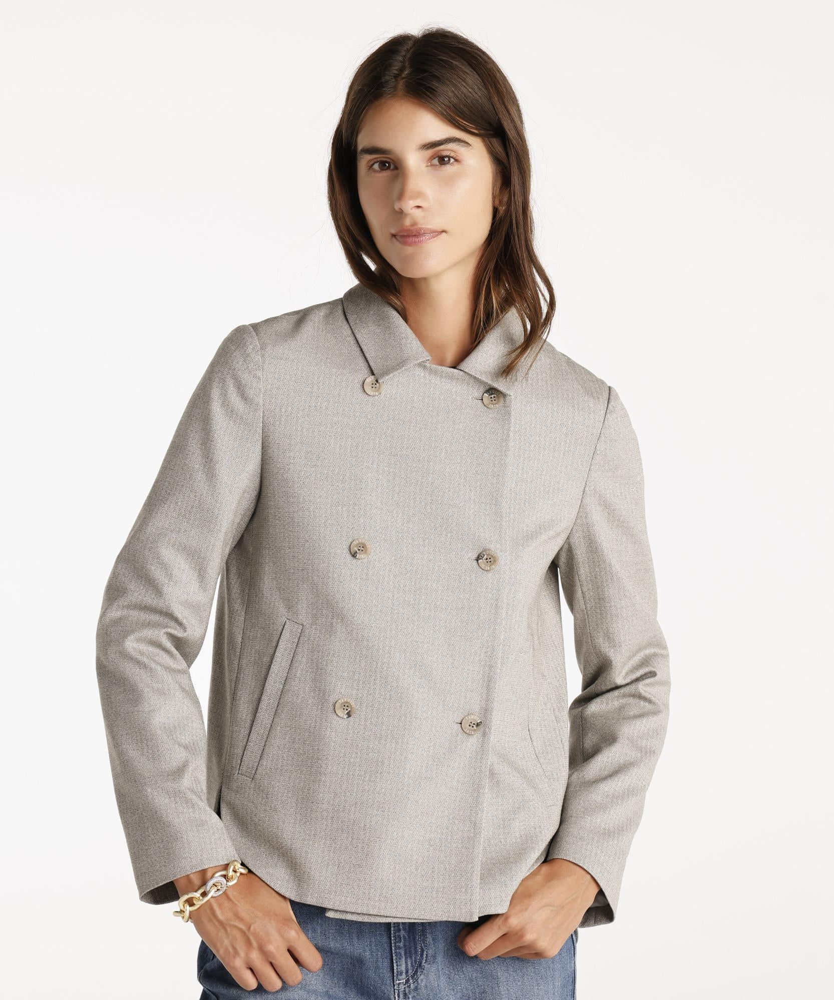 Bu kısa palto, zarif ve modern bir stil sunuyor. Geniş yakaları ve çift sıra düğmeleri ile klasik bir hava katarken, dar paçalı pantolonlar ve topuklu botlarla mükemmel bir uyum sağlar. Serin havalarda şıklığınızı tamamlamak için ideal bir parçadır.