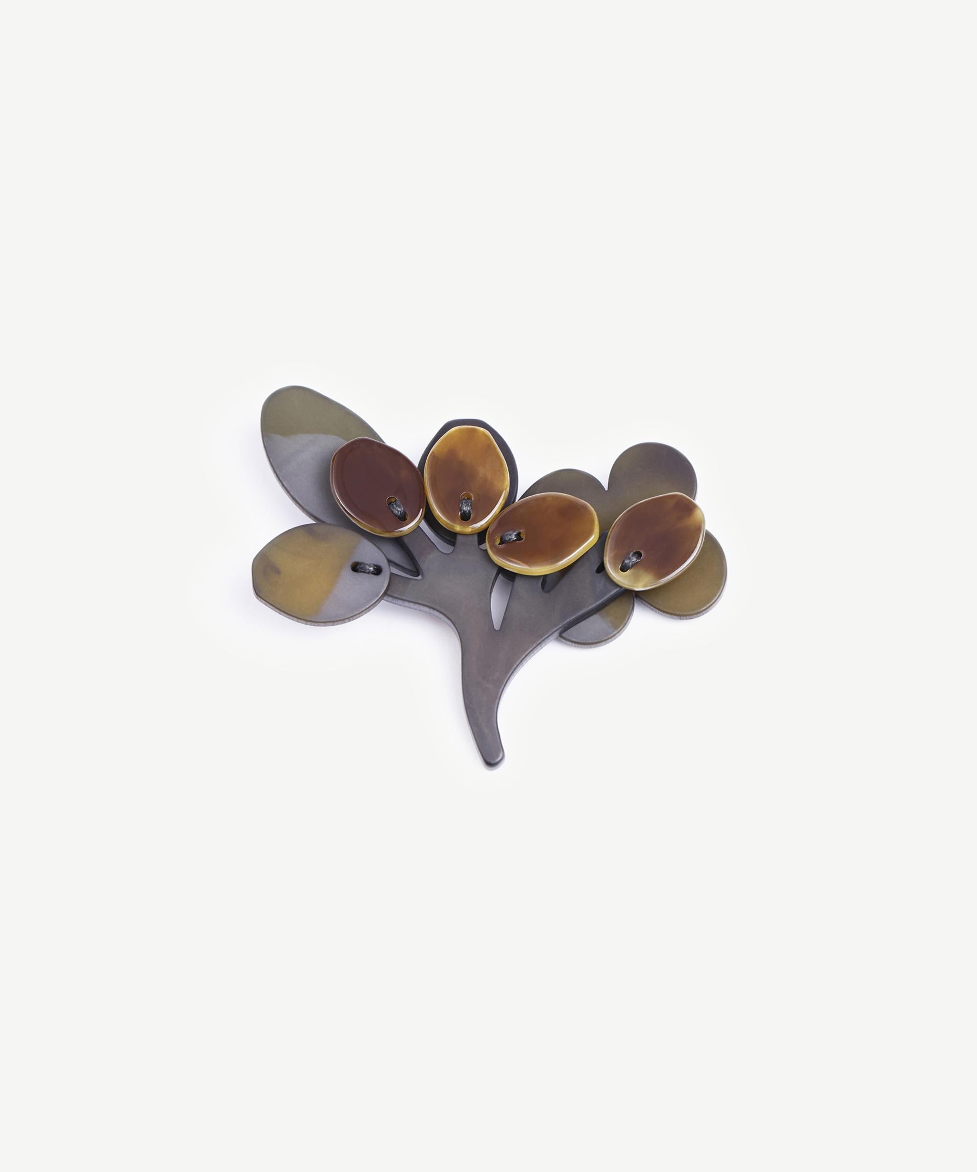 Toprak tonlarındaki bu broş, doğallığı ve sıcaklığı yansıtan sade ama etkileyici bir parçadır. Özellikle koyu renk ceketlerde çok şık bir kontrast oluşturur. Bohem veya etnik tarzları sevenler için ideal bir tercih olabilir. El yapımı hissiyle özgünlük katar.