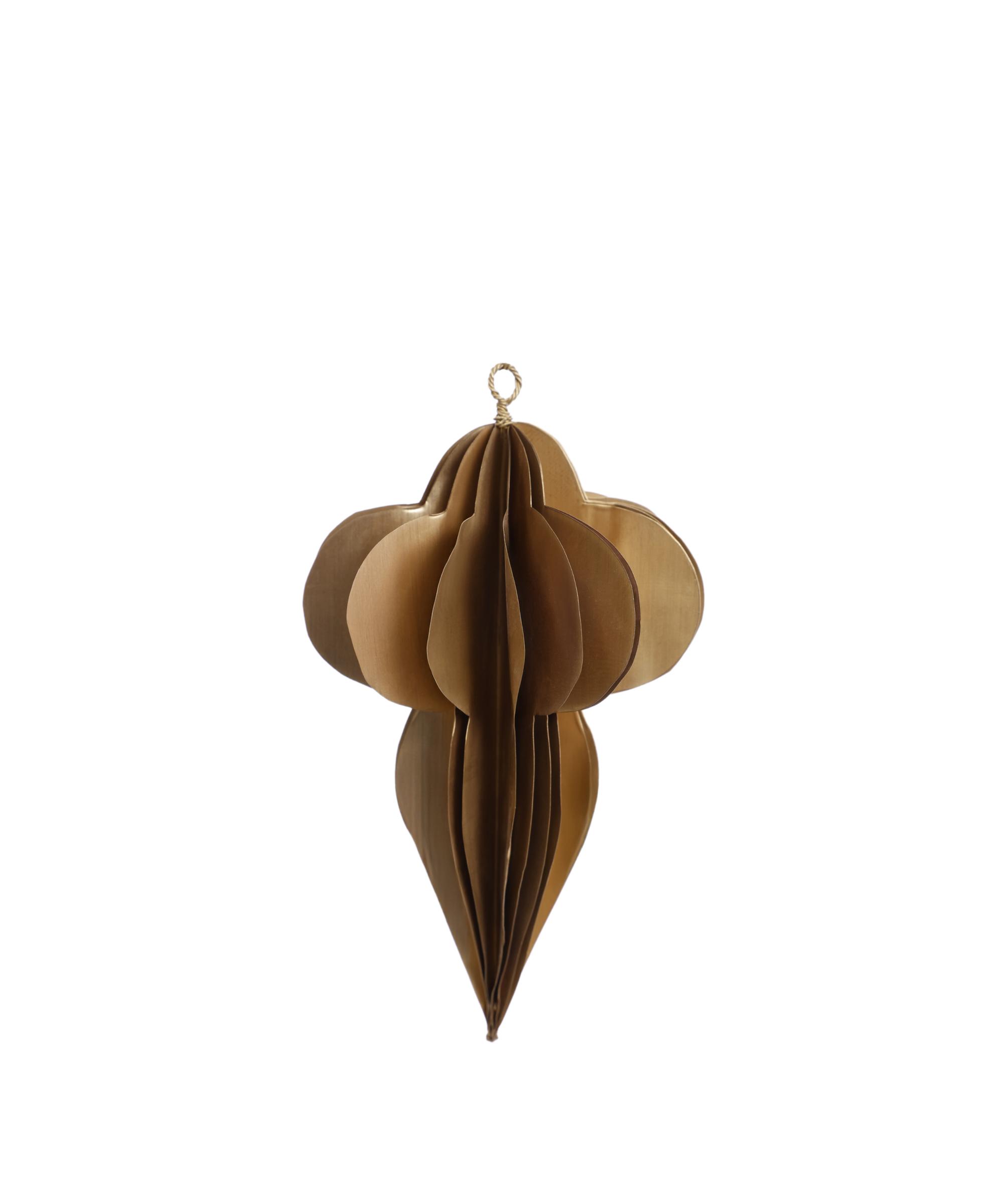 Pirinç malzemeden tasarlanmış bu zarif süs objesi, yılbaşı ve kış dekorasyonlarınıza doğal ve sıcak bir dokunuş katar. Katlanabilir yapısı sayesinde kolayca saklanabilir ve tekrar kullanılabilir özelliktedir. Minimal ve şık formuyla hem ağaç süslemelerinde hem masa ya da raf üstü dekorlarda hoş bir atmosfer yaratır. Kış mevsiminde çam dalları, mumlar ve ışık zincirleriyle birlikte kullanıldığında büyüleyici bir uyum sağlar.