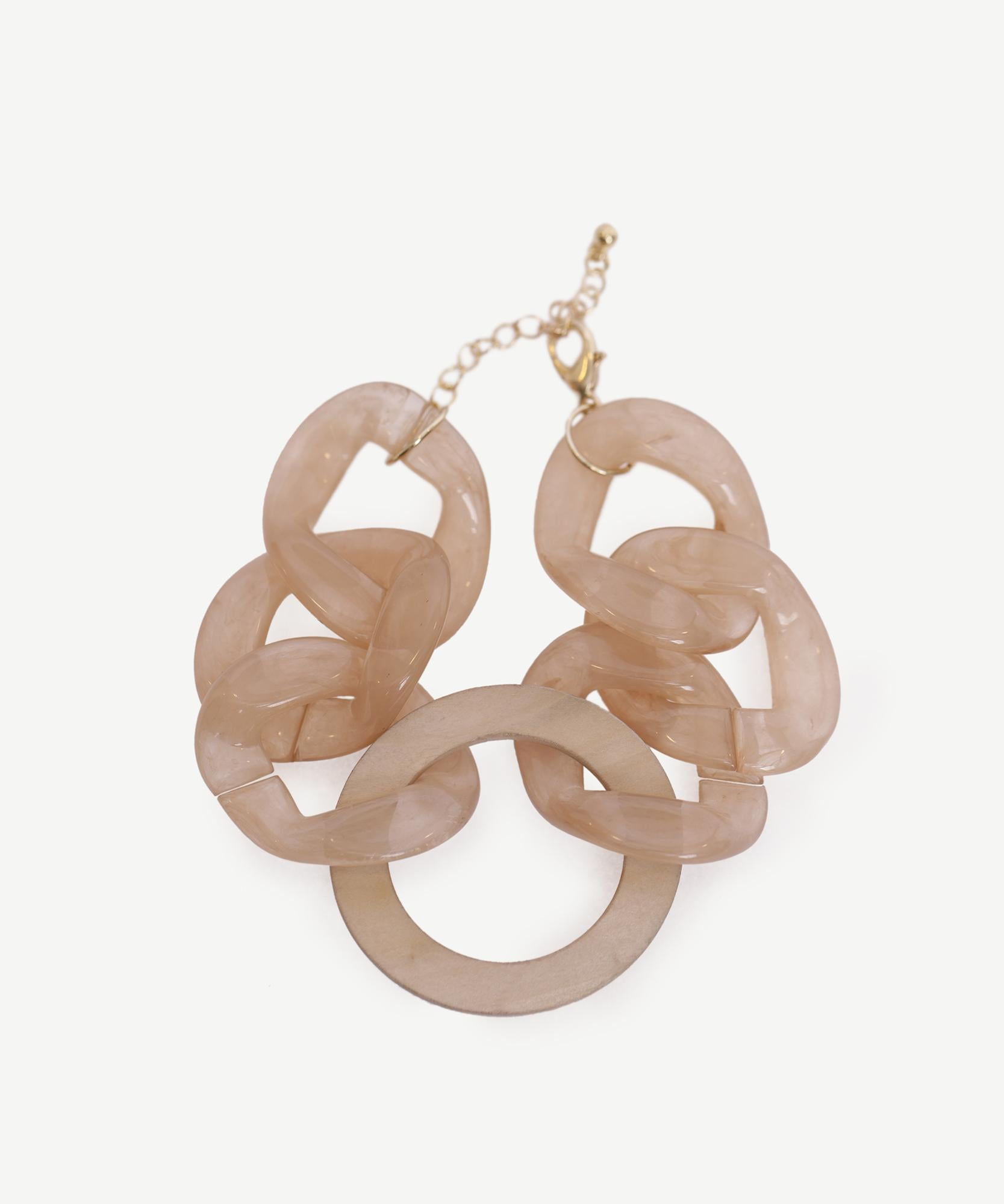 Ahşap ve plastik halkalardan tasarlanan görkemli bir zincir bileklik... Blazer ceket & denim kombinleriniz ya da klasik elbiselerinizle elegan bir görünüm yaratmak için kullanabilirsiniz.