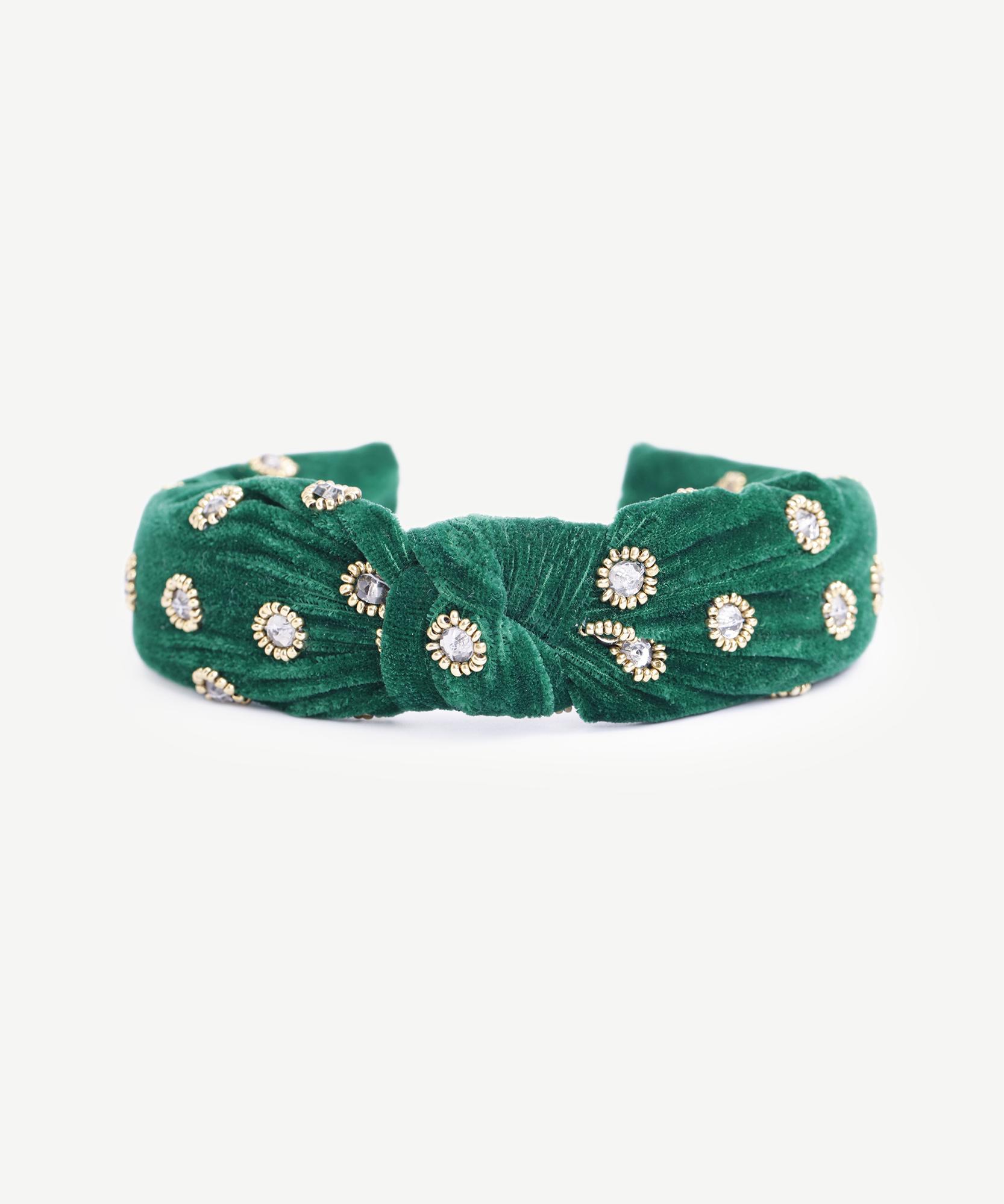 Bu yeşil kadife taşlı saç bandı, gösterişli ve zarif tasarımıyla dikkat çekiyor. Üzerinde yer alan altın tonlu taş detayları ışıltılı bir görünüm sunarken, kadife dokusu sofistike bir tarz kazandırıyor. Hem günlük kombinlerinize şıklık katmak hem de özel davetlerde stilinizi tamamlamak için ideal bir aksesuar seçeneğidir.