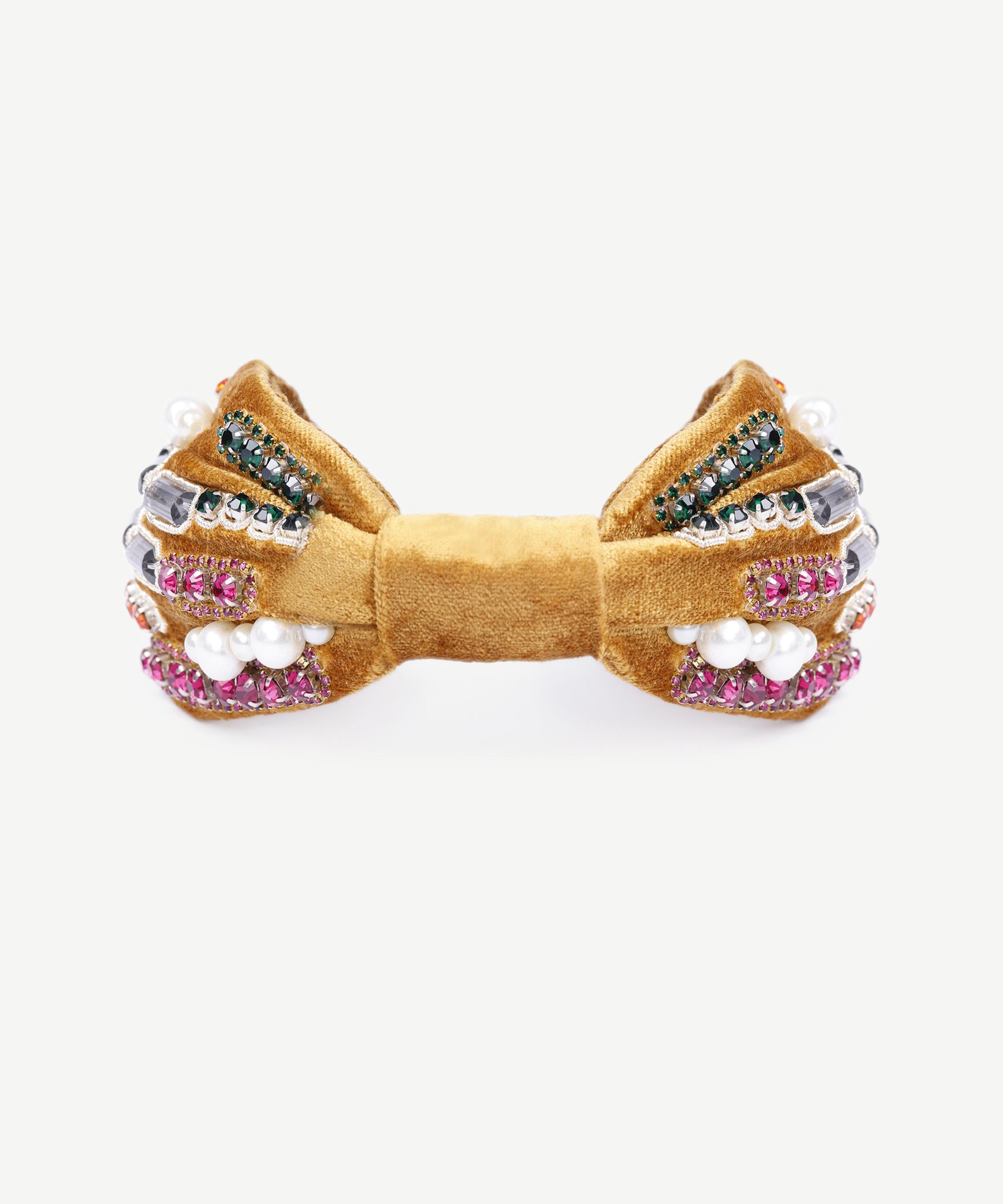 Kadife dokusu ve göz alıcı taş detaylarıyla süslenmiş bu saç bandı, iddialı kombinlerin vazgeçilmezi olmaya aday. Zarif görünümü sayesinde özel günlerde şıklığınızı tamamlamak için keyifle tercih edilebilir.