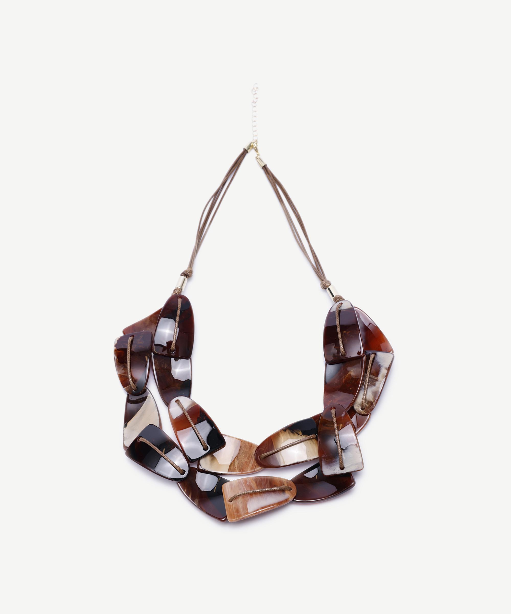 Heykelsi formlardan ilham alan bu kolye, göz alıcı detaylarıyla sonbahar-kış stiline güçlü bir karakter kazandırır. Farklı yüzey dokularının bir araya gelişiyle oluşan bu tasarım, basic kazakları ya da sade elbiseleri anında dönüştürür. Bohem ve sofistike tarzın buluştuğu bu parça, stilini vurgulamak isteyenler için etkileyici bir tamamlayıcıdır. Günlük şıklığı zahmetsizce güçlendirir.