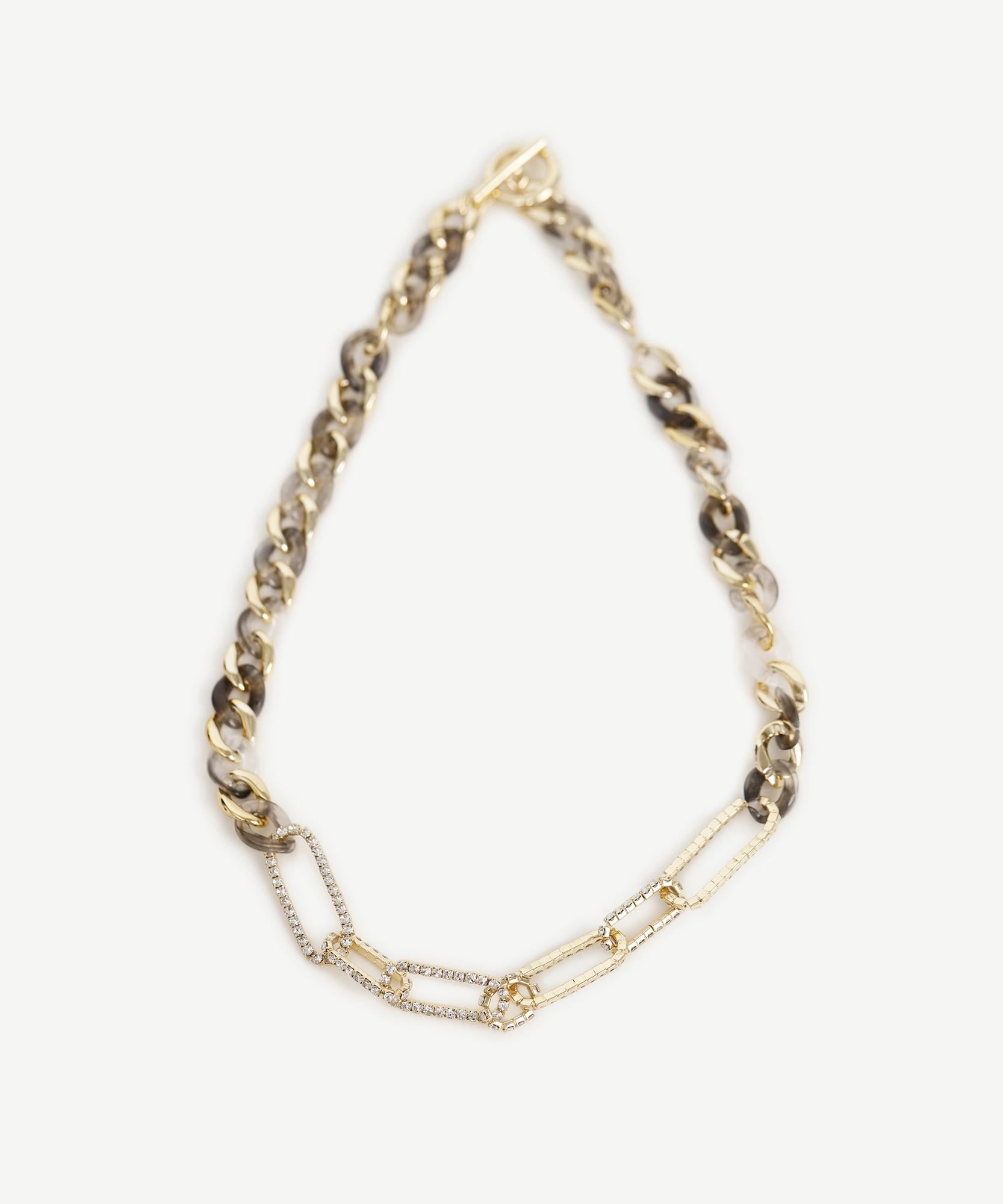 Zarif zincir detaylı bu kolye, hem günlük kombinlerinizde hem de şık davetlerde tercih edebileceğiniz bir parça. Minimalist tasarımıyla öne çıkan bu aksesuar, özellikle sade bluzlar veya elbiselerle mükemmel bir uyum sağlar. Günlük stilinize zarif bir dokunuş katmak için ideal bir seçim.