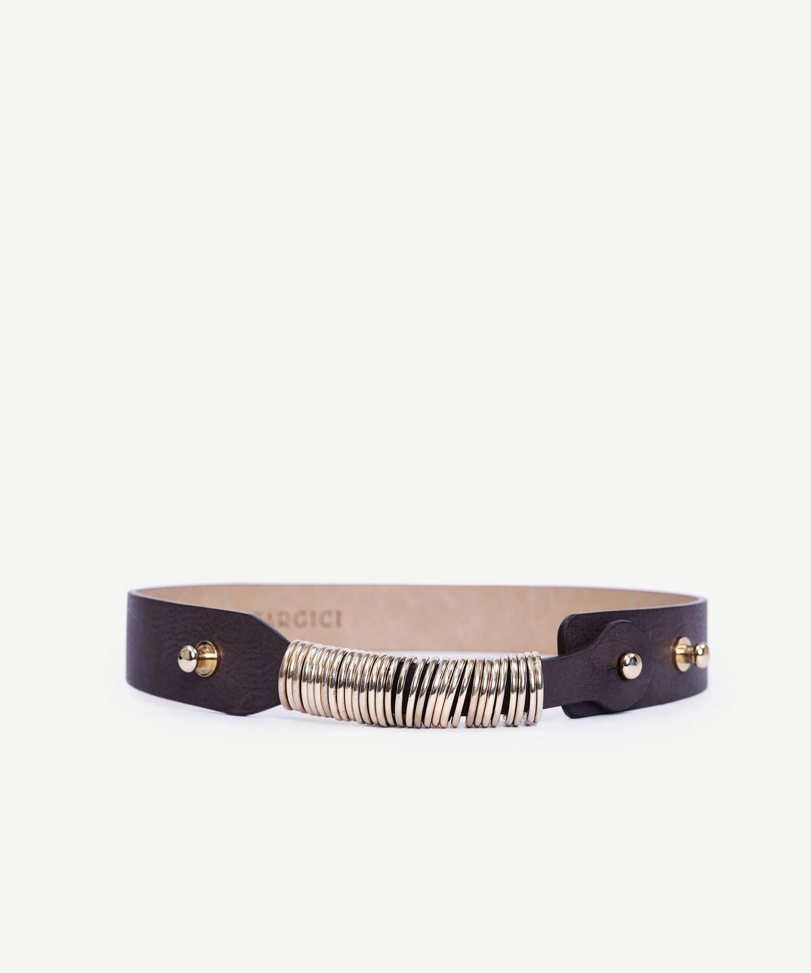 Parlak metal halkalarla süslenmiş bu kemer, sade kıyafetlere zarif bir ışıltı katmak için tasarlanmıştır. Geniş formu ve tokasız yapısıyla elbiseler ve oversize kazakların üzerine rahatça kullanılabilir. Yanlardaki çıtçıt kapamalar hem modern bir görünüm sunar hem de kolay kullanım sağlar. Kış kombinlerinize sofistike bir dokunuş eklemek için ideal bir parçadır.