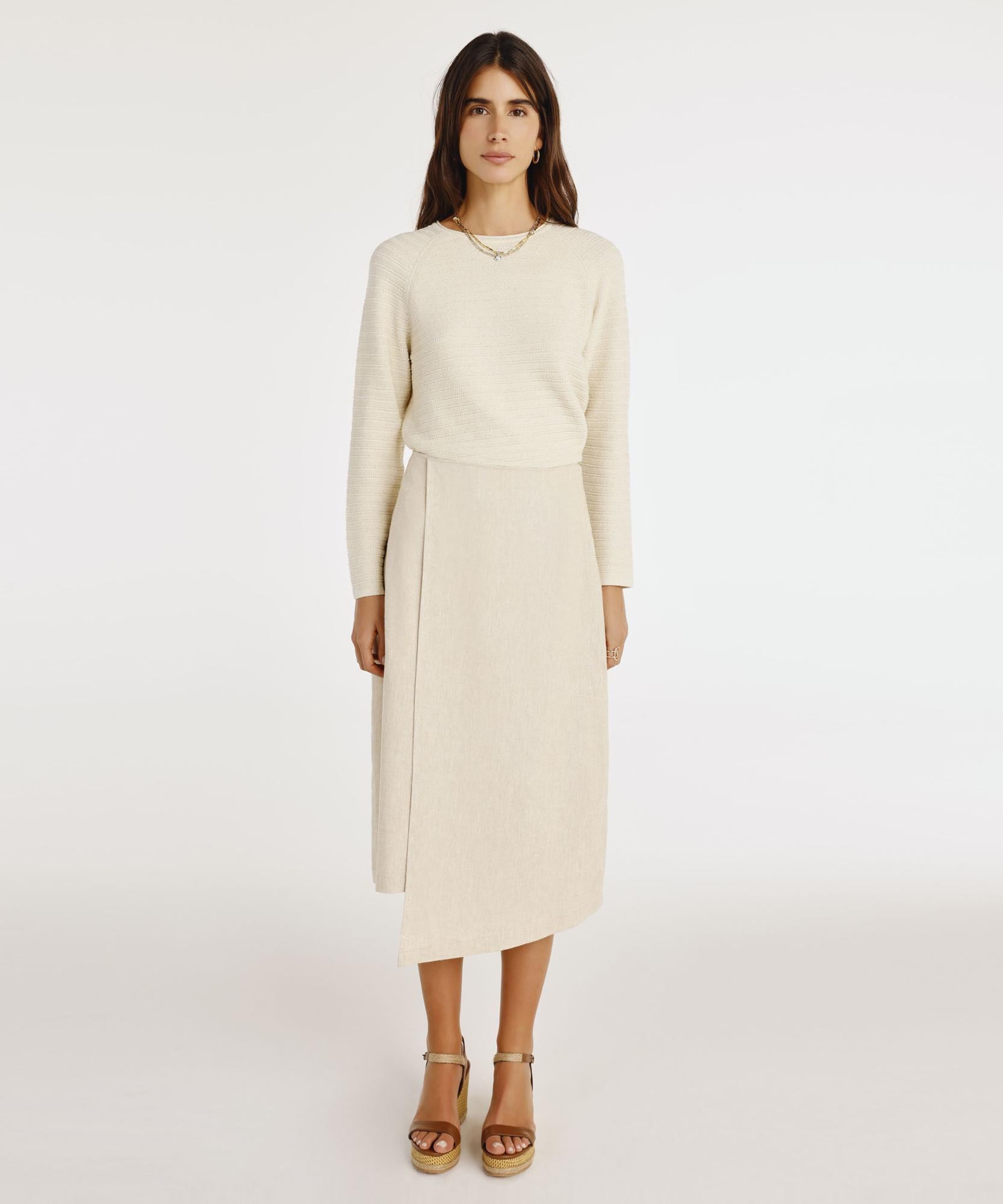 Zamansız tasarımıyla dikkat çeken bu midi etek, her sezonun favorisi olacak. Düz bir bluz ve topuklu ayakkabılarla tamamlanarak klasik bir stil oluşturulabilir. Günlük kullanımlarda sneaker veya babetlerle rahat bir görünüm elde edilebilir. Yüksek bel detayı vücut hatlarını belirginleştirirken, hafif kumaşı ve akıcı kesimi gün boyu konfor sunar.