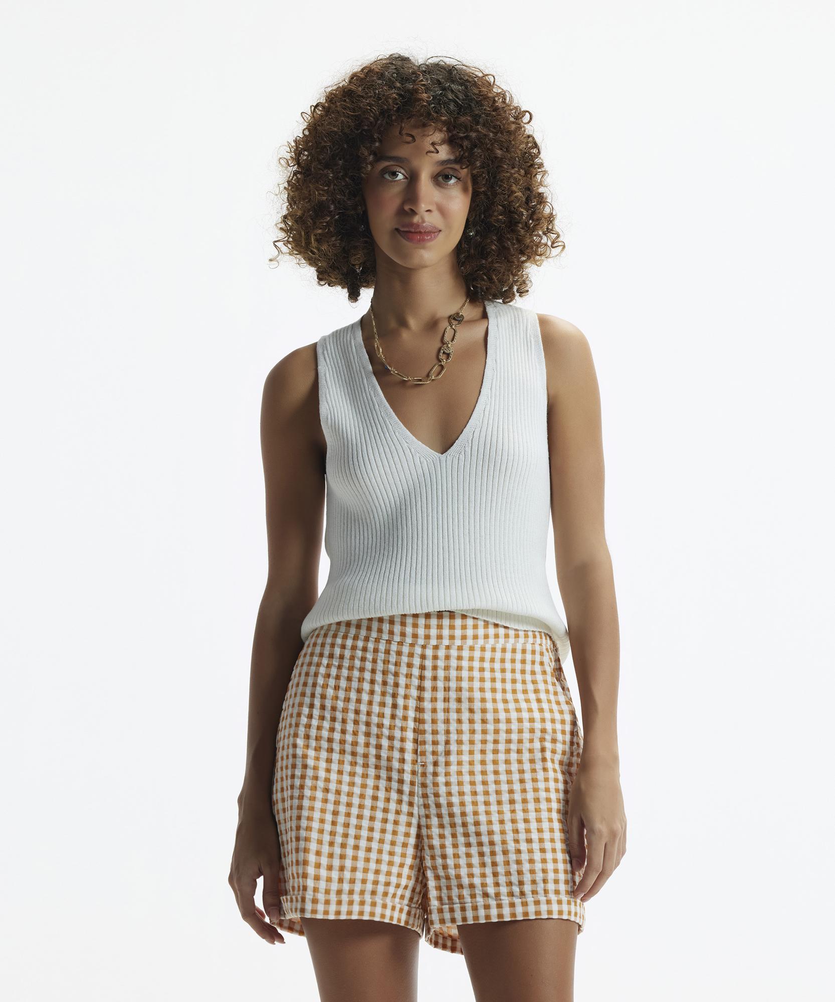 Yaz aylarının enerjisini yansıtan bu kareli şort, hem konforlu hem de stil sahibi olmak isteyenler için güzel bir aday. Beli lastikli yapısı rahat bir kullanım sağlarken, canlı deseni ile göz alıcı bir detay ekliyor. Düz renkli bir tişört ve sandaletlerle rahat bir hafta sonu kombini yaratabilirsiniz.