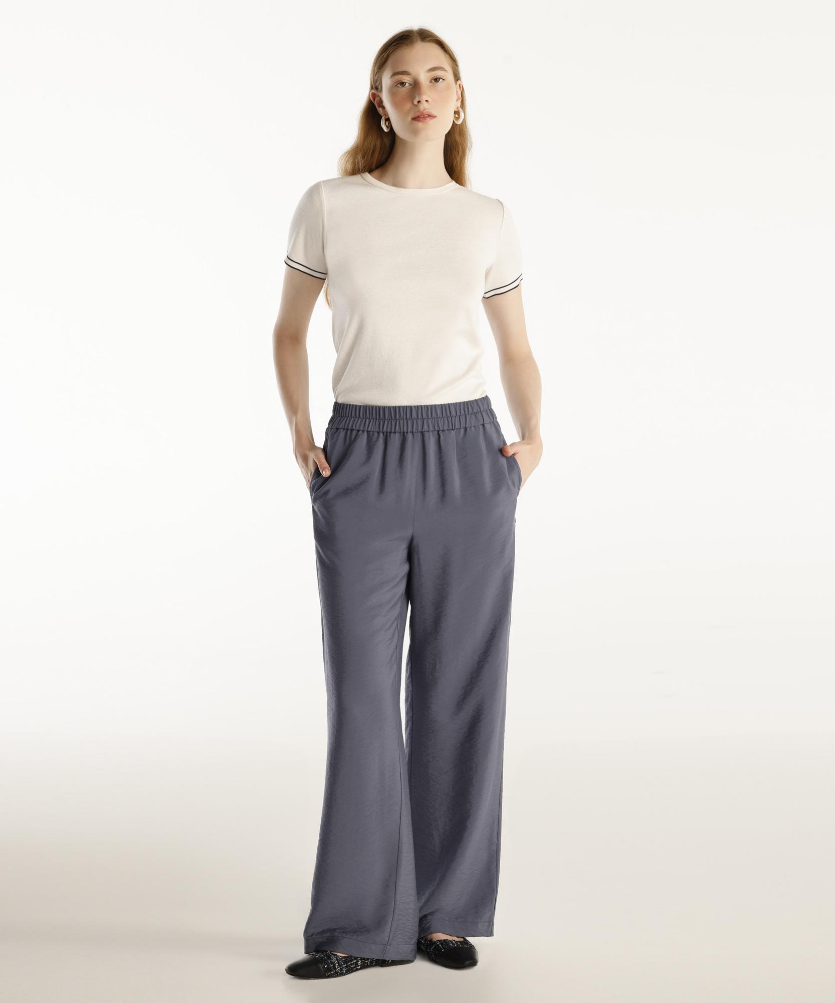 Bu rahat kesim pantolon, günlük kullanımda hem konfor hem de şıklık arayanlar için ideal bir seçenektir. Bel kısmındaki lastik detayı, pantolona esneklik kazandırırken, hafif dökümlü yapısı sayesinde şık bir görünüm sunar. Düz tabanlı ayakkabılar ve basic tişörtlerle kombinleyerek sade ve rahat bir stil elde edebilirsiniz.