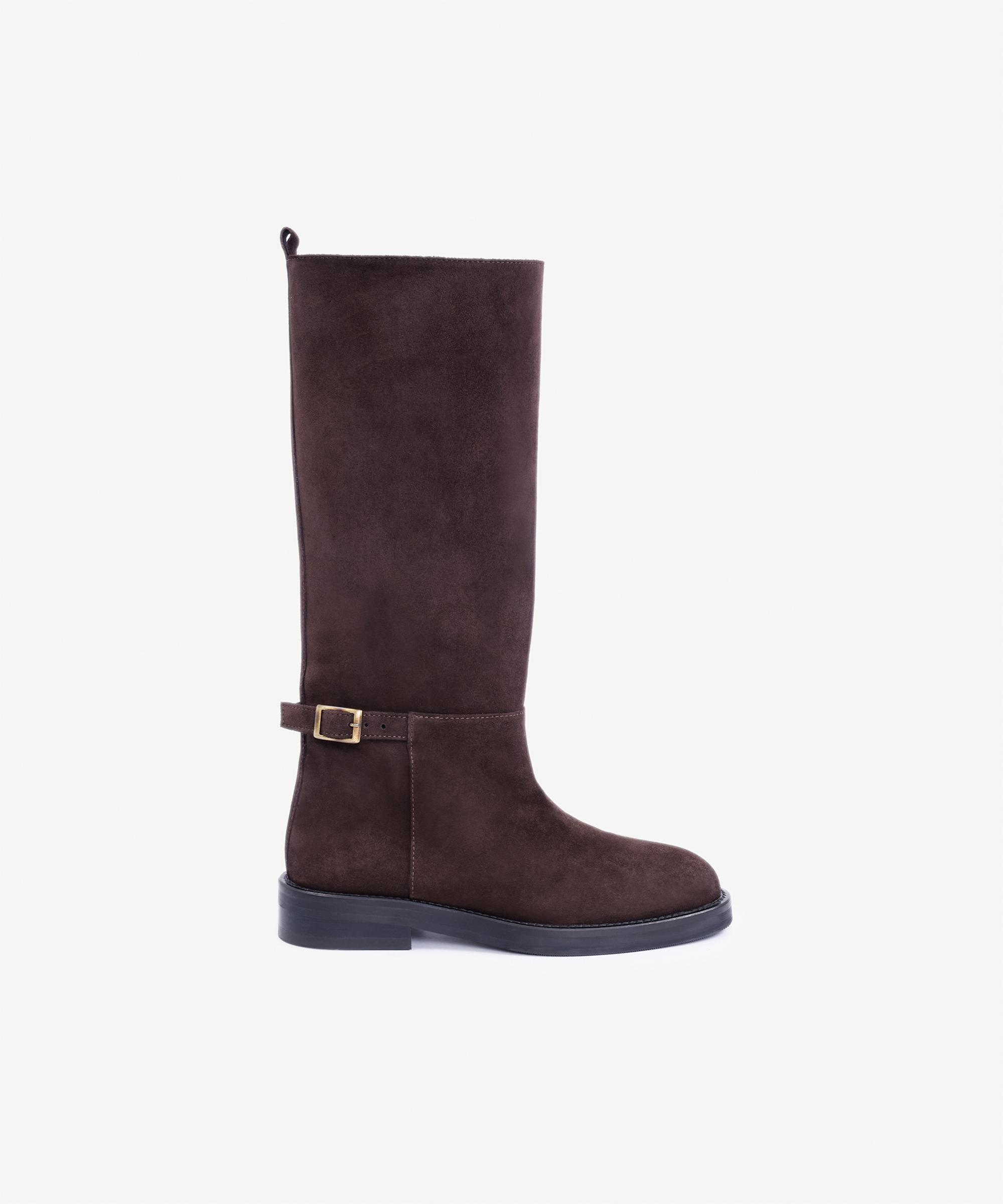 Minimal çizgilerle modernize edilen bu uzun deri çizme, zamansız bir stil arayanlar için öne çıkıyor. Bilek kısmındaki toka detayı klasik havaya hareket kazandırıyor. Midi etekler ya da dar paça pantolonlarla şık kombinler yaratabilirsiniz.
