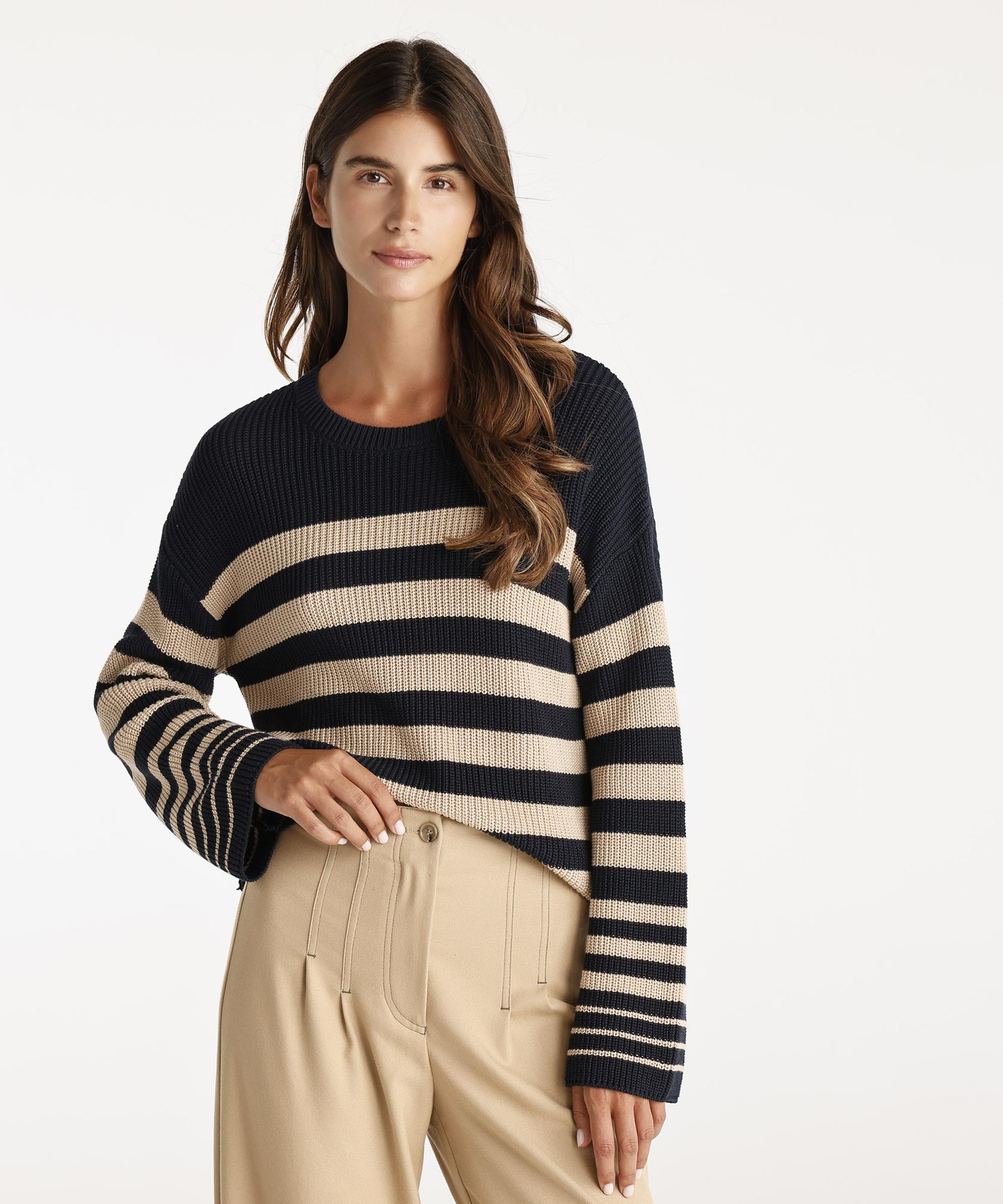 Modern çizgili tasarımı ve rahat kesimi ile bu kazak, her gardırobun vazgeçilmezi olacak. Yumuşak dokusu gün boyu konfor sunar. Kot pantolon ve sneakerlarla kombinleyerek tarzınızı tamamlayabilirsiniz.