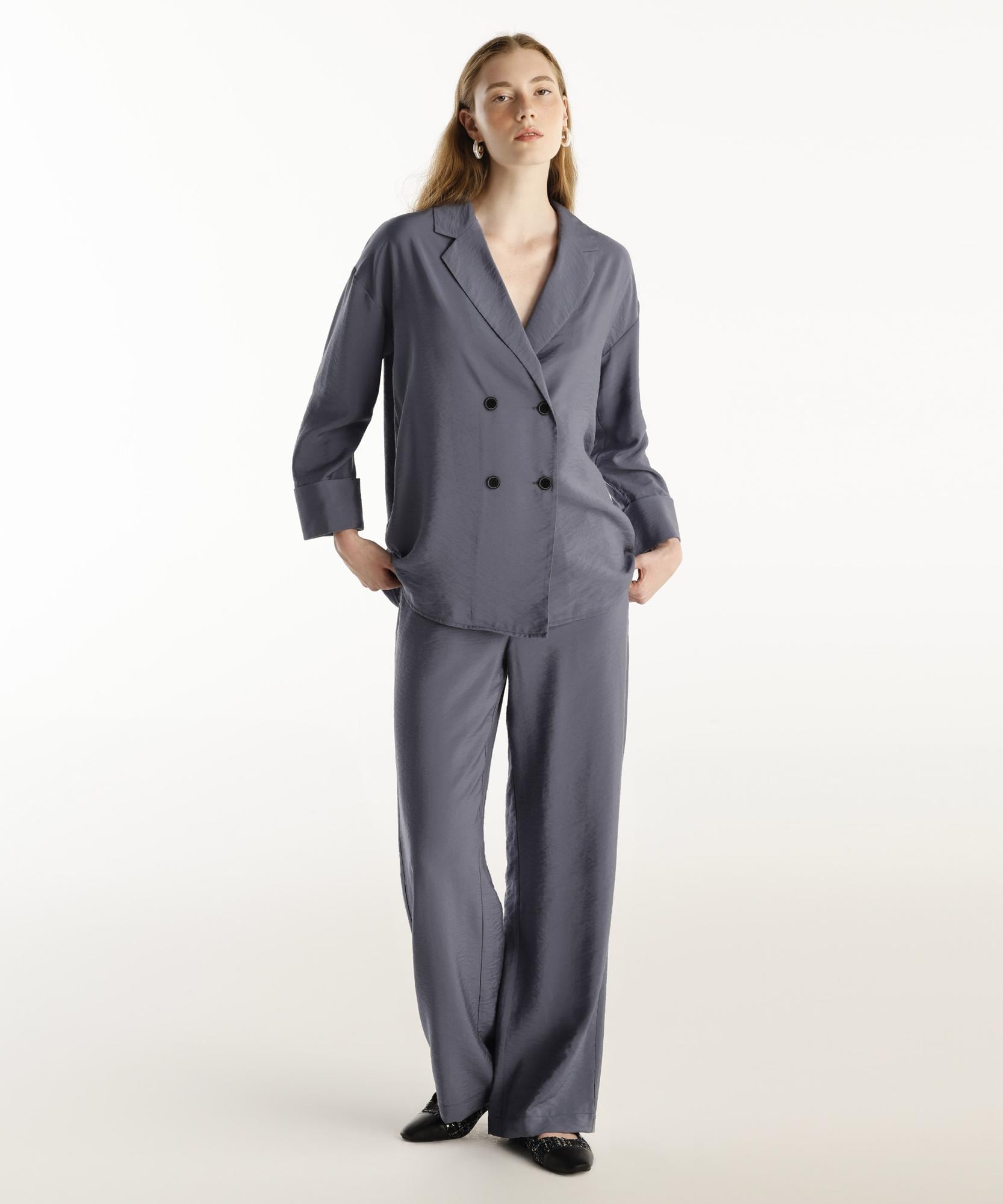 Klasik ve zarif bu ceket, gardırobunuzun olmazsa olmazlarından. Düğme detayları ve rahat kesimi ile her mevsim giyilebilir. İnce bir kemerle belinizi vurgulayarak şıklığınızı artırabilirsiniz.