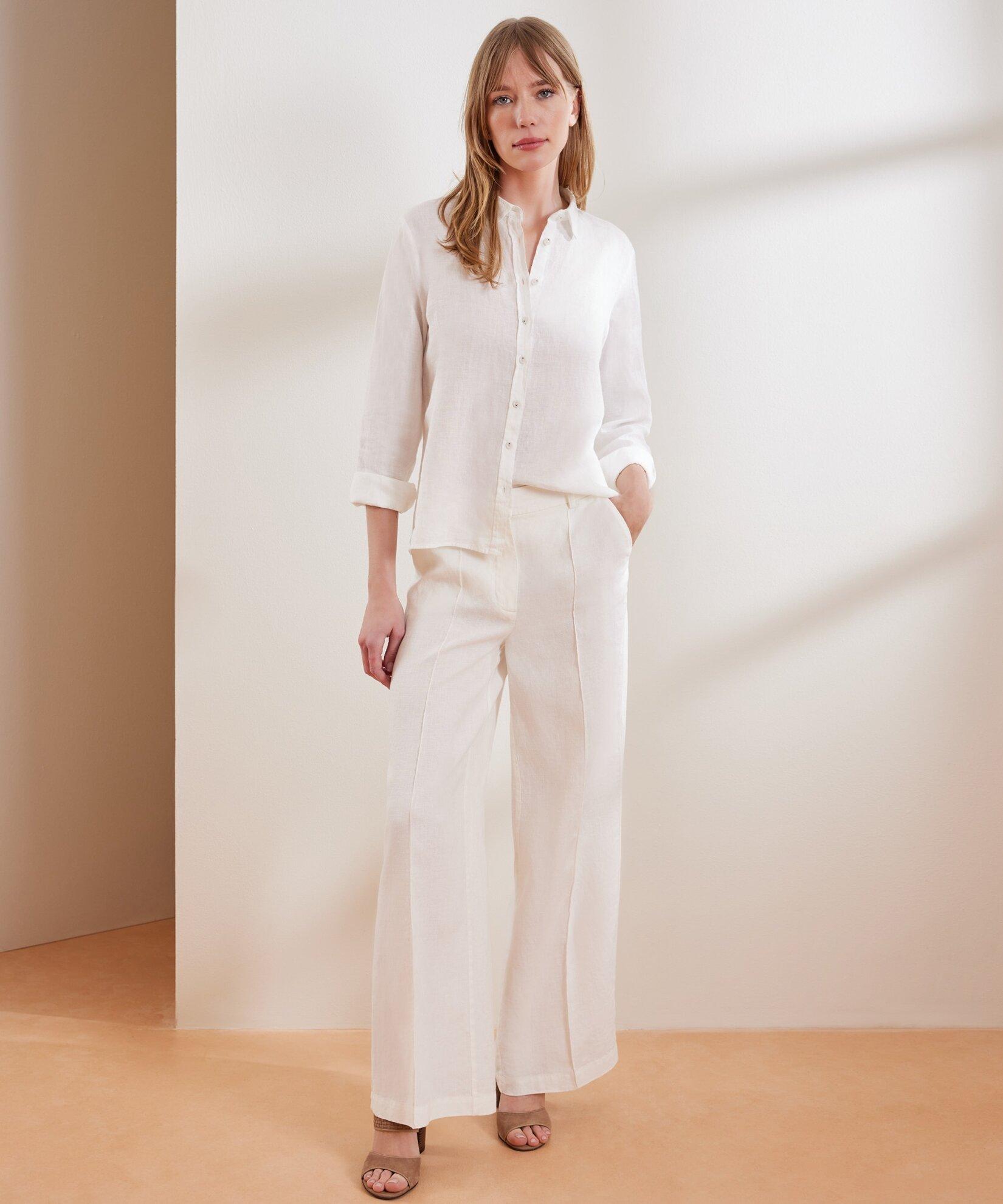 Özgür kadının enerjik tarzını öne çıkaran bol paça pantolon yüzde yüz ketenden üretildi. Pantolonu dökümlü gömleklerle eşleştirerek tarzınızın bohem vurgusunu artırın.