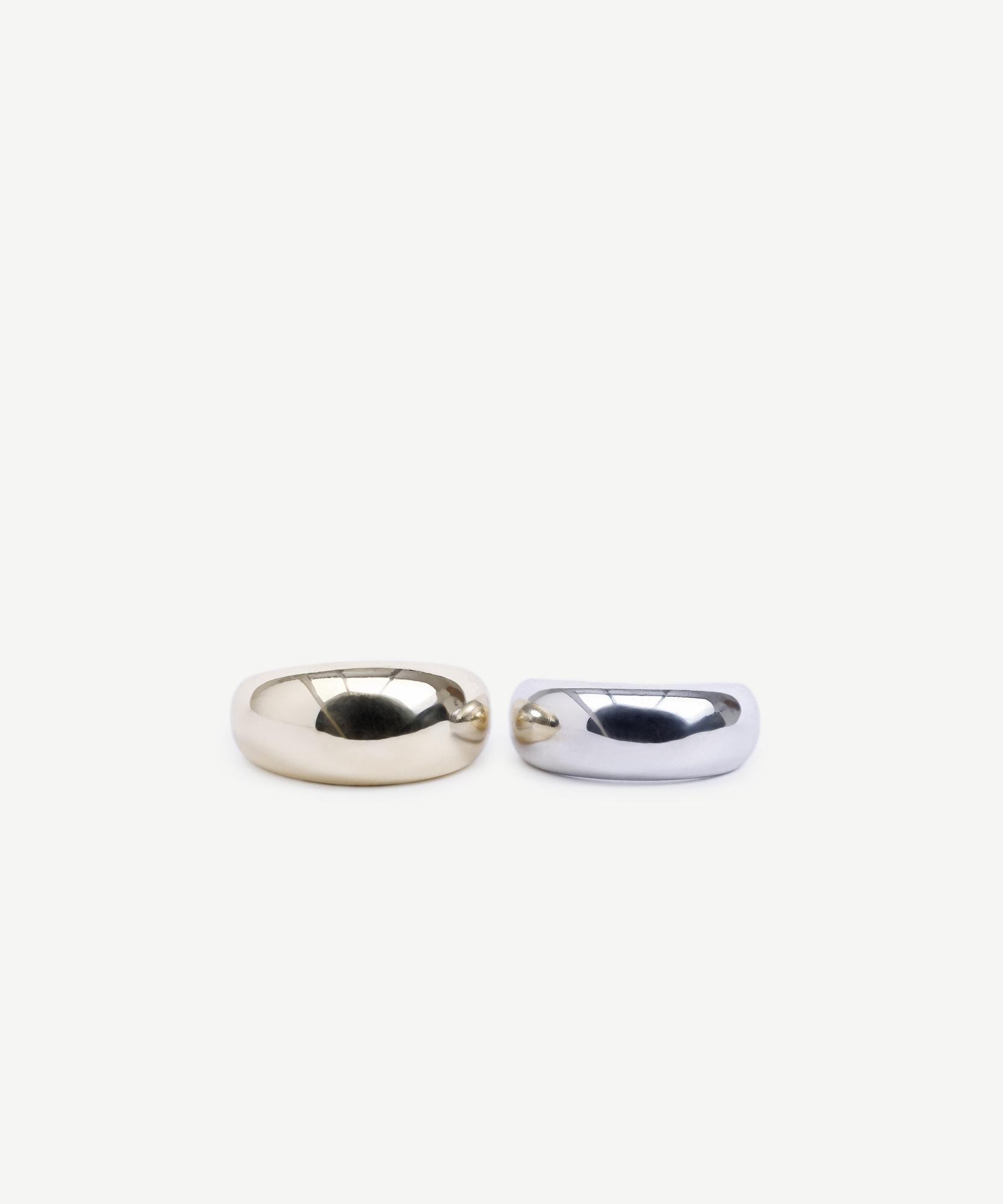 Yumuşak hatlı ve dolgun formuyla dikkat çeken bu ikili yüzük seti, minimalizmin güçlü ifadesini taşıyor. Altın ve gümüş tonlarının birlikte sunulması, farklı stillerle rahatça kombin yapma imkânı sağlıyor. Parlak yüzeyiyle sade kombinlere sofistike bir dokunuş ekliyor. Kış aylarında oversize kazaklar ya da yün atkılarla modern ve şık bir görünüm sunuyor.