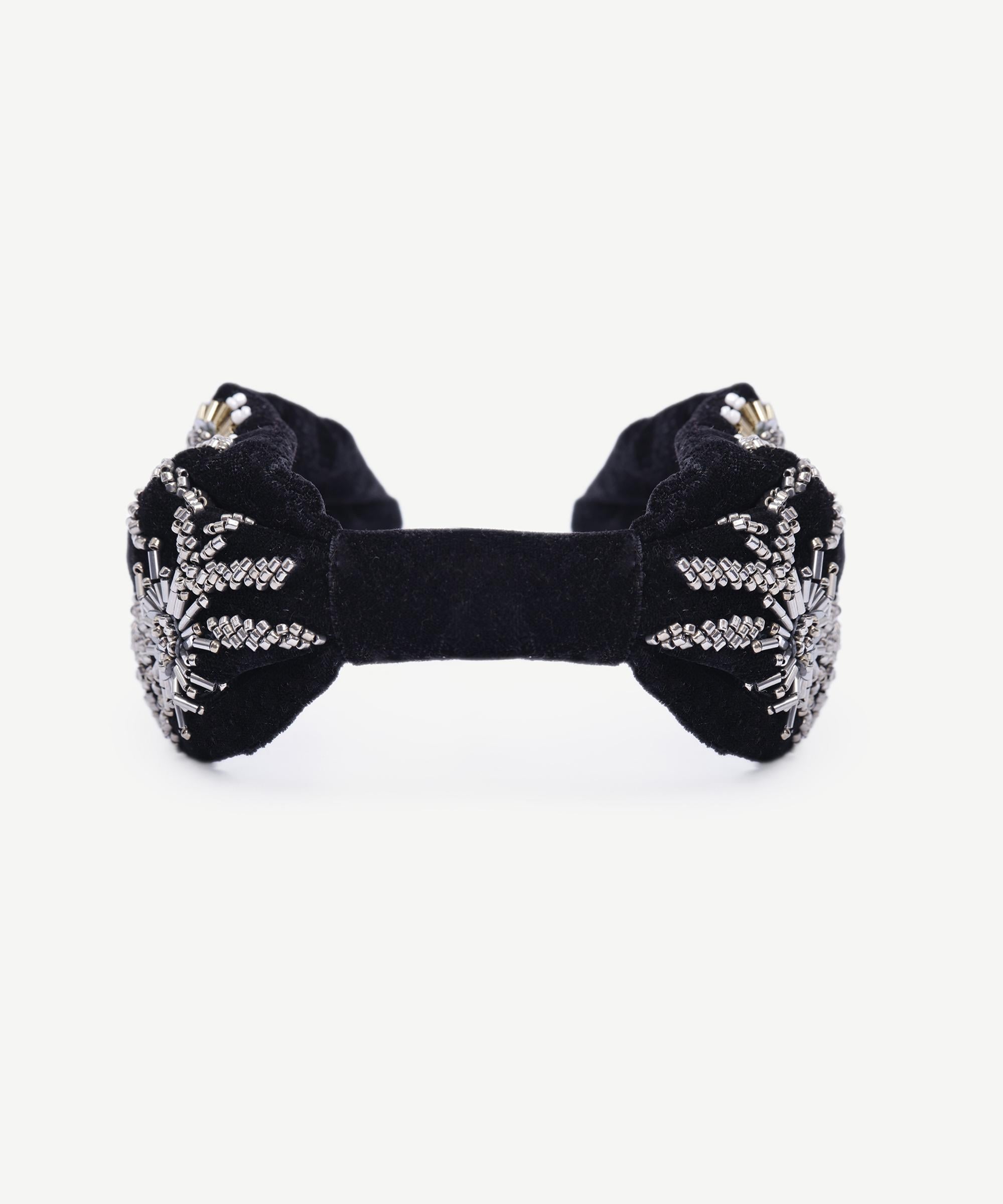 Kadife dokusu üzerine işlenen yıldız desenli parlak taşlar bu modeli eşsiz kılar. Kışlık kombinlerde feminen bir dokunuş arayanlar için zarif bir seçim sunar.
