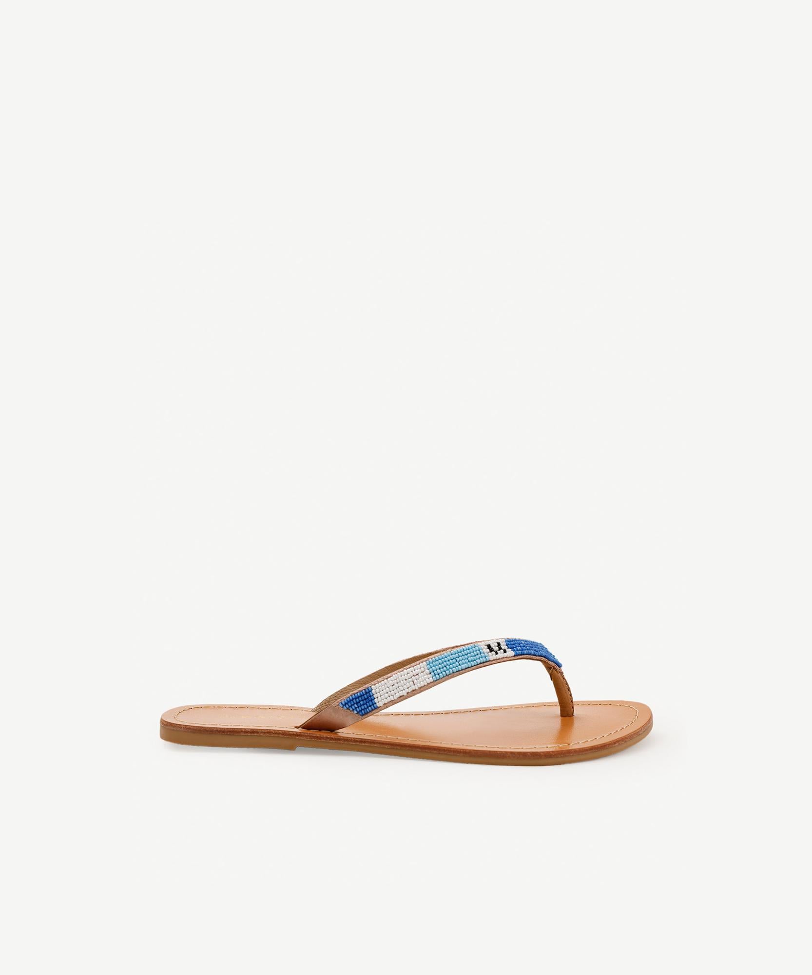 El yapımı boncuk detayları ile süslenmiş zarif parmak arası terlik, şık ve rahat bir yaz alternatifi sunuyor. Plajdan şehir gezilerine kadar farklı ortamlarda kullanıma uygun olan bu model, şortlar, hafif elbiseler ve salaş pantolonlarla mükemmel uyum sağlar.