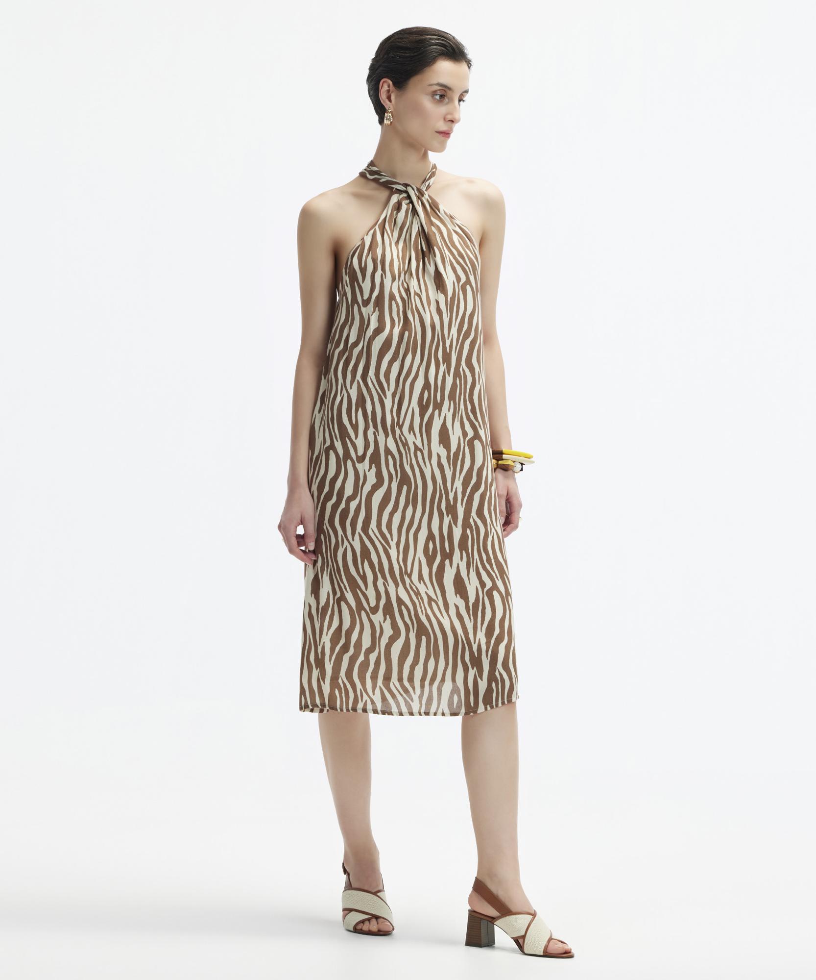 Zarif bir siluet yaratan bu maxi elbise, sofistike bir stil oluşturmak isteyenler için mükemmel bir parça olmaya aday. Halter yaka detayı ile boyun bölgesine vurgu yapan tasarımı, yaz akşamlarınızı renklendirirken düz renkli sandaletler ve büyük boy bir şapka ile tamamlayarak yazın keyfini çıkarabilirsiniz.