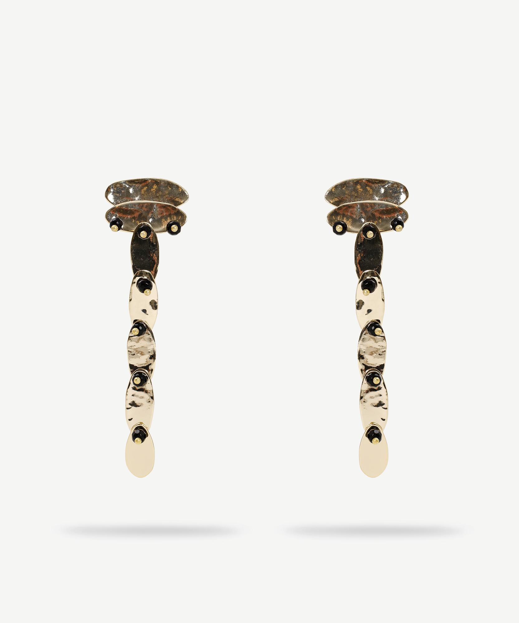 Detaylarla zenginleştirilmiş bu sallantılı küpeler, şık ve sofistike bir hava katıyor. Uzun ve akışkan tasarımı sayesinde yüz hatlarını ön plana çıkarırken, dinamik bir hareket sağlıyor. Zarif detaylarıyla gece kombinlerinin vazgeçilmezi olacak bir tamamlayıcıdır.