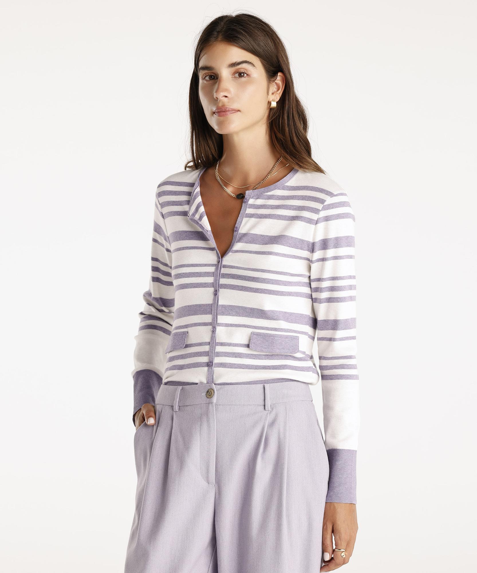 Bu çizgili hırka, hem şıklığı hem de rahatlığı bir arada sunuyor. İçine düz renk bir bluz veya t-shirt giyerek günlük kombinlerinizi tamamlayabilirsiniz. Özellikle dar kesim pantolonlar ve loafer ayakkabılarla birlikte kullanıldığında, sade ve modern bir tarz elde edebilirsiniz.