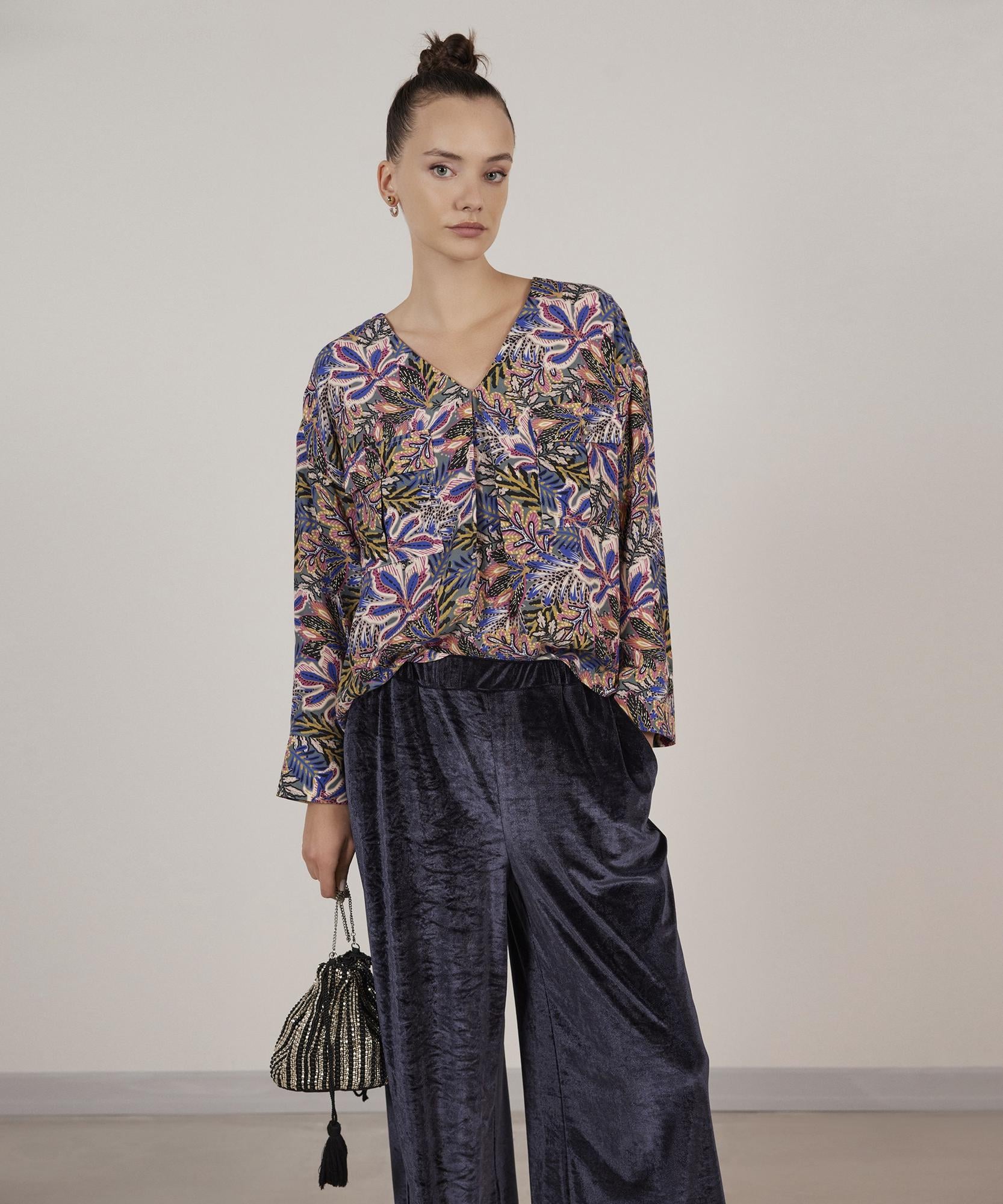 Cep detaylı derin V yakalı dökümlü gömlek rahat ve konforlu bir şıklık için tasarlandı. Gömleği uzun etek ve botlarla eşleştirerek bohem stilinizi öne çıkartın.