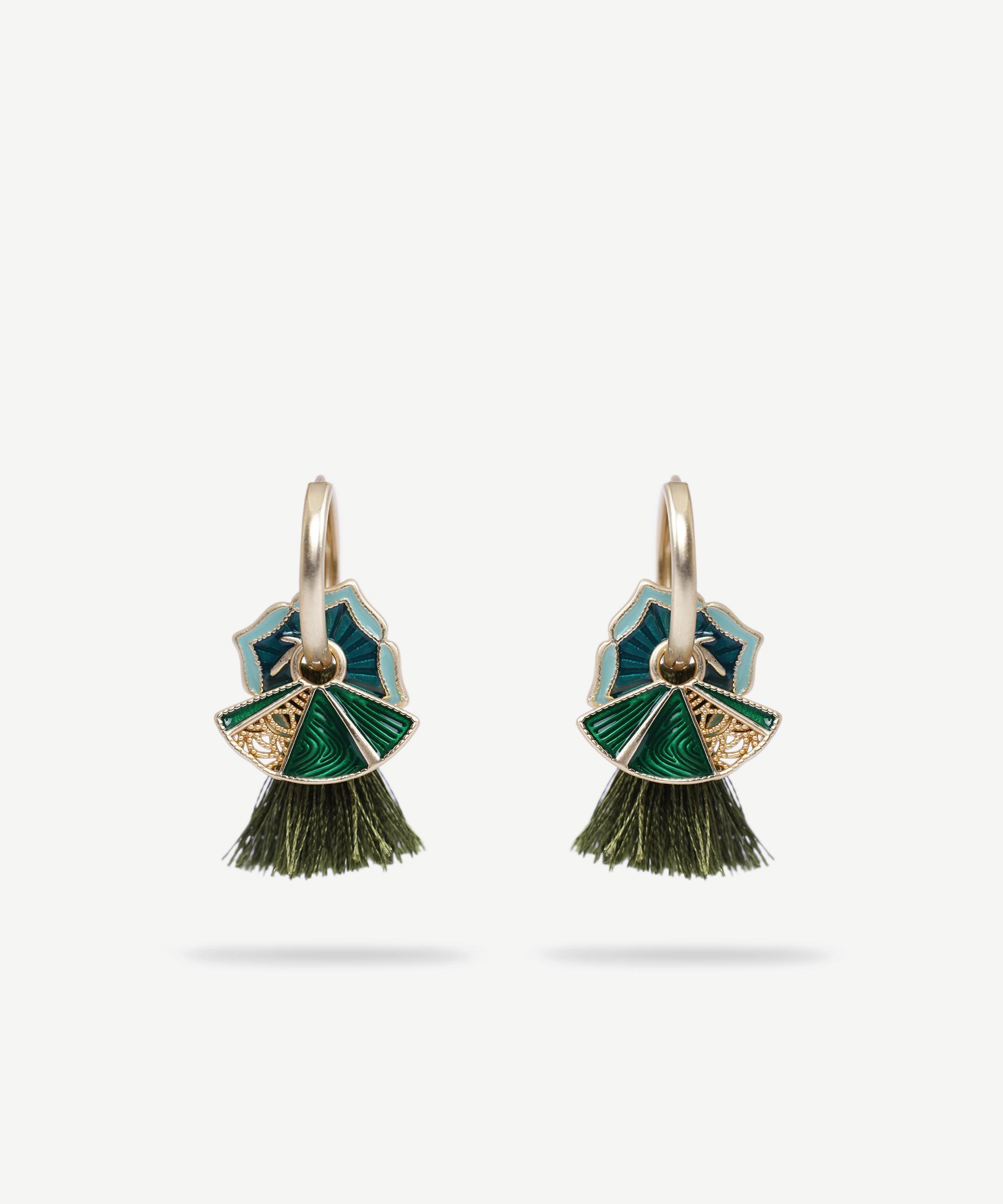 Etnik detaylarıyla dikkat çeken bu küpe, püsküllü tasarımıyla özgün bir tarz yaratıyor. Renkli motifleriyle bohem stilinize zarif bir hareket kazandırıyor. Günlük kombinlere eğlenceli bir dokunuş yapmak isteyenler için şık bir seçenek sunuyor. Özellikle keten elbiselerle hoş bir uyum sağlıyor.