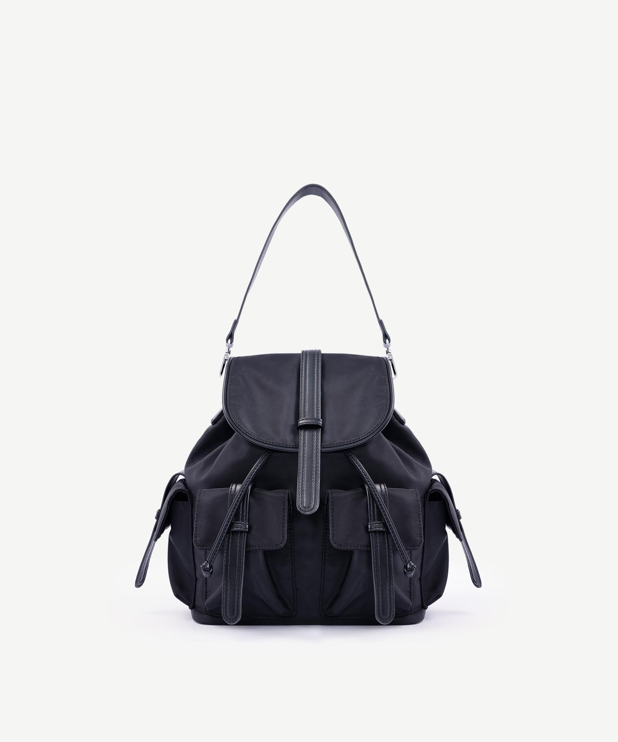 Modern çizgileriyle öne çıkan bu kadın sırt çantası, çok cepli tasarımıyla kullanım kolaylığı sunuyor. Parlak dokusu ve tokalı kapama detayları stilinize sofistike bir dokunuş katıyor. Hem omuz hem sırt kullanımına uygun olması sayesinde pratiklik kazanıyor. Günlük şehir stilinizi tamamlamak için hoş bir tercih oluşturuyor.