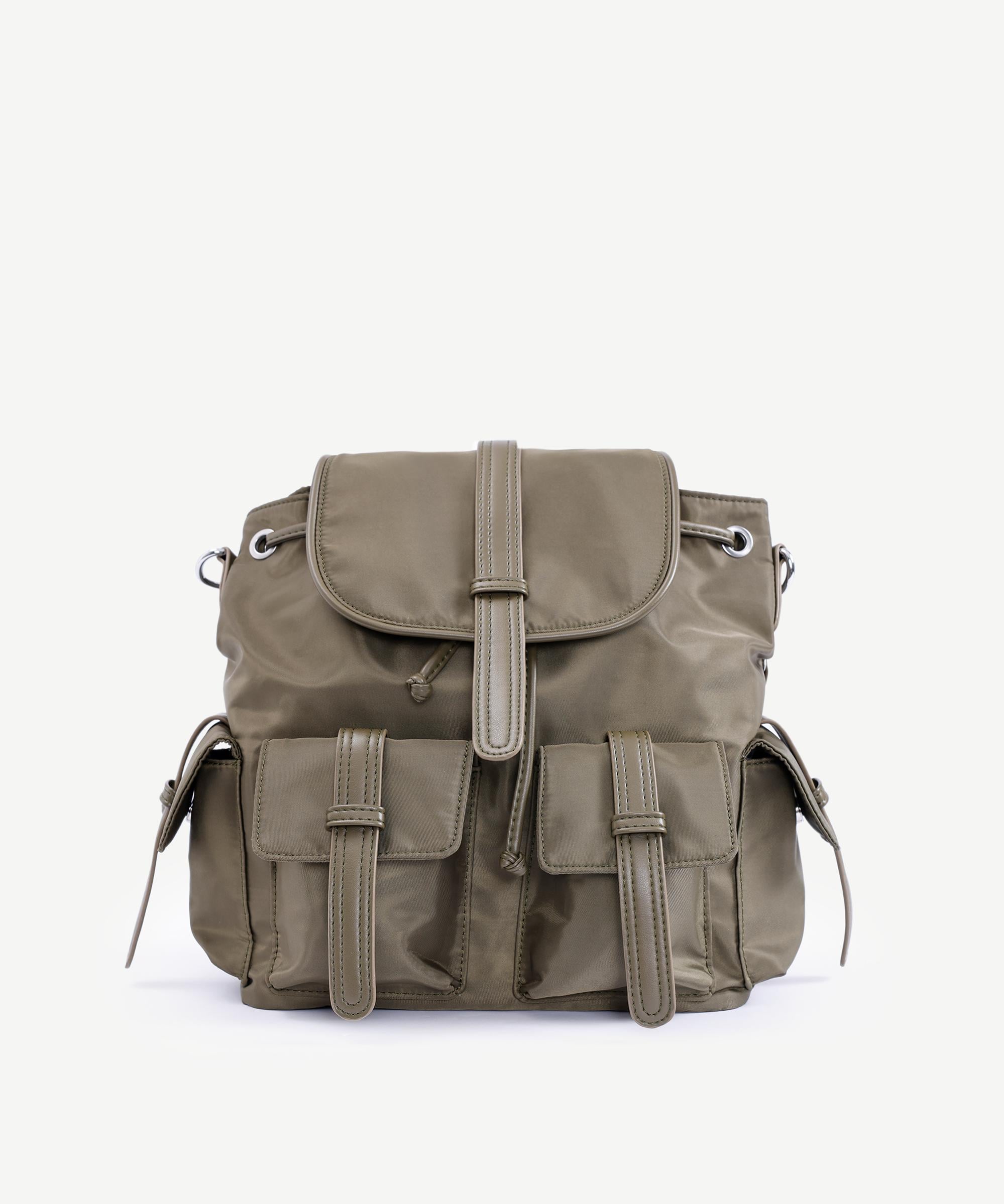 Modern çizgileriyle öne çıkan bu kadın sırt çantası, çok cepli tasarımıyla kullanım kolaylığı sunuyor. Parlak dokusu ve tokalı kapama detayları stilinize sofistike bir dokunuş katıyor. Hem omuz hem sırt kullanımına uygun olması sayesinde pratiklik kazanıyor. Günlük şehir stilinizi tamamlamak için hoş bir tercih oluşturuyor.
