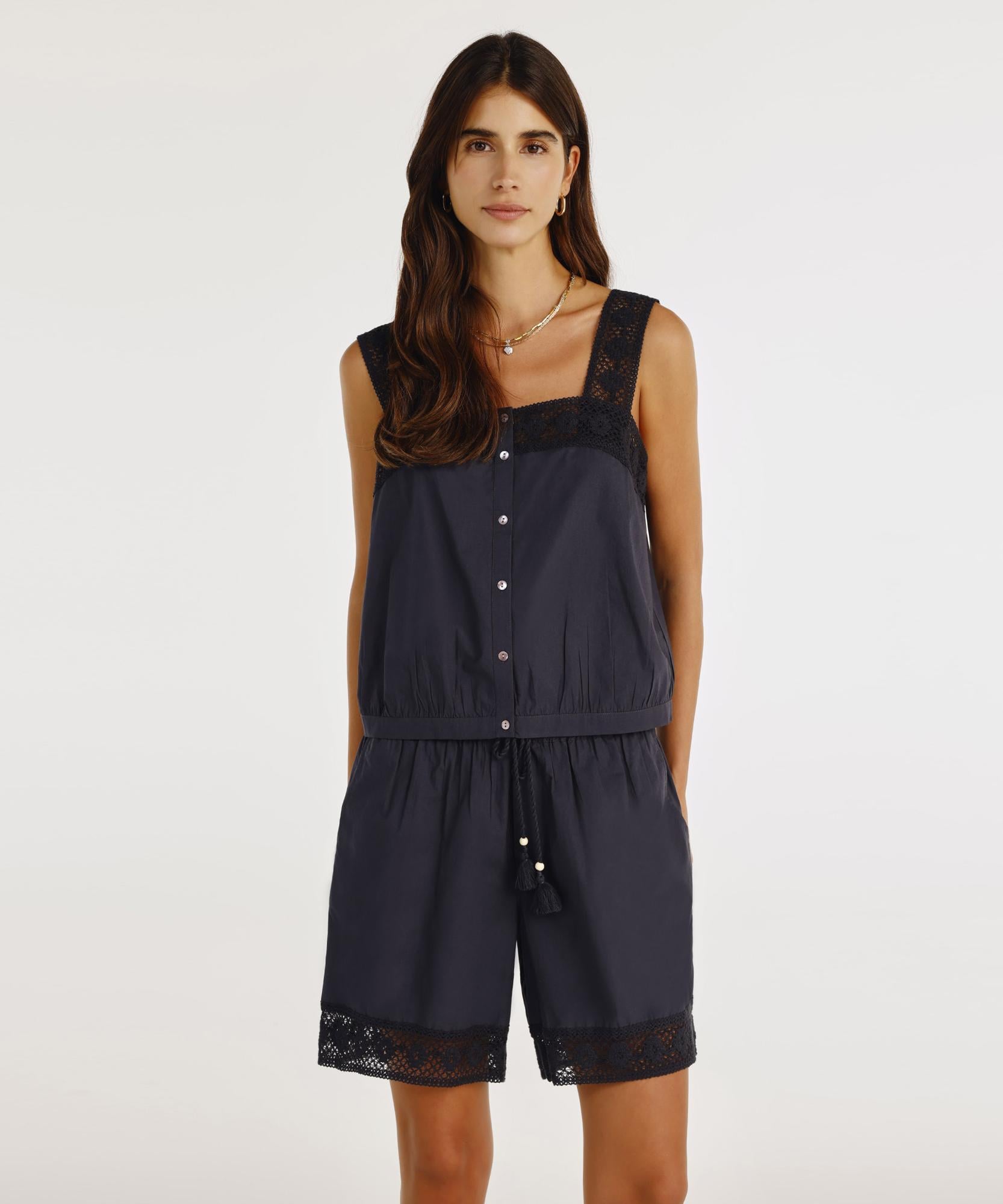 Dantel detaylarıyla romantik bir hava katan bu şort, hafif ve rahat yapısıyla yazın favorisi olacak. Askılı bluz ve sandaletle bohem, gömlek ve topuklu ayakkabılarla zarif bir görünüm elde edebilirsiniz.
