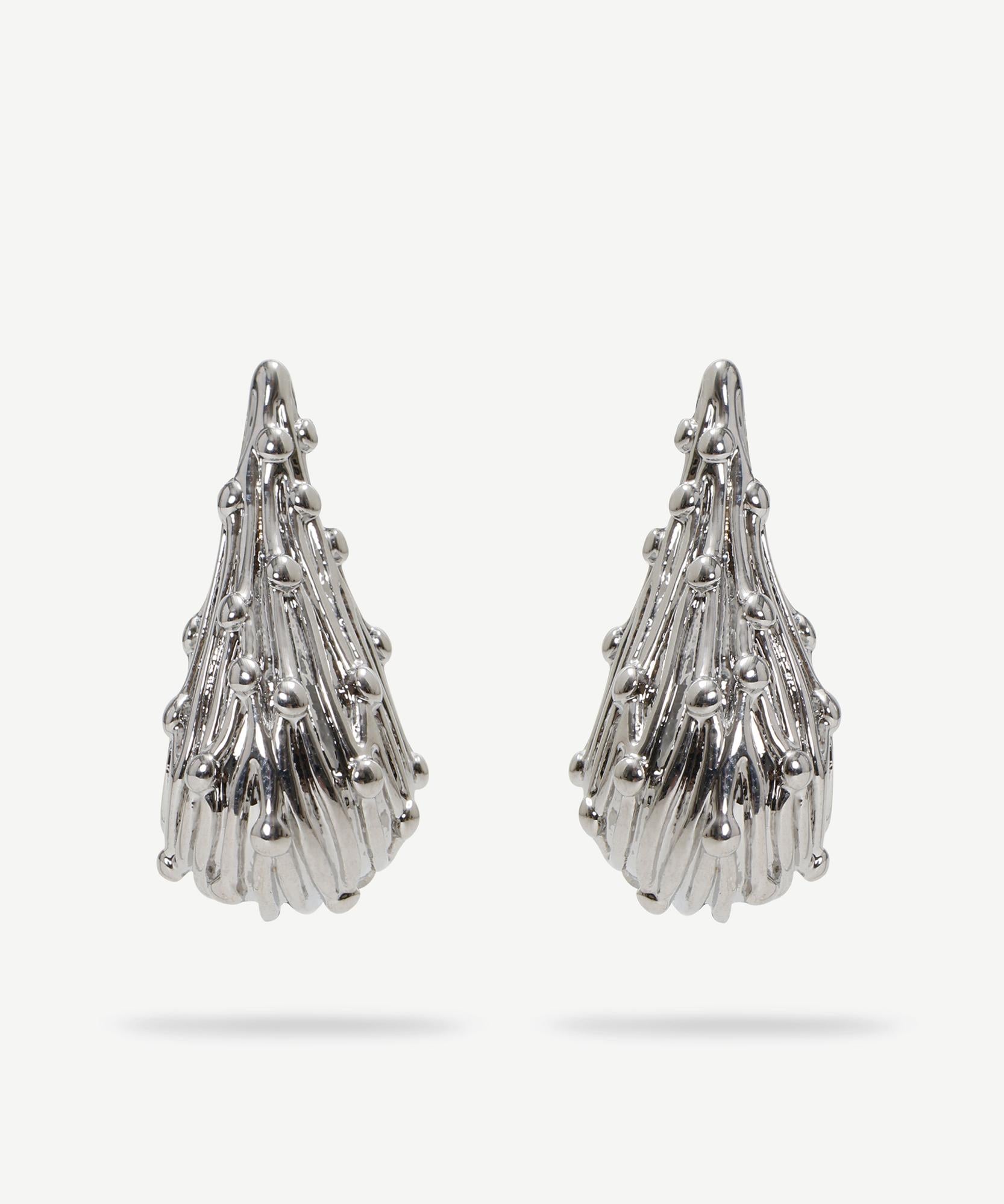 Gümüşün asil ışıltısını damla formuyla buluşturan bu küpe, sofistike bir görünüm sunuyor. Akışkan tasarım detayları ve işlenmiş dokusu ile göz alıcı bir duruş sergiliyor. Özel günlerden günlük kullanıma kadar her stile rahatlıkla uyum sağlıyor.