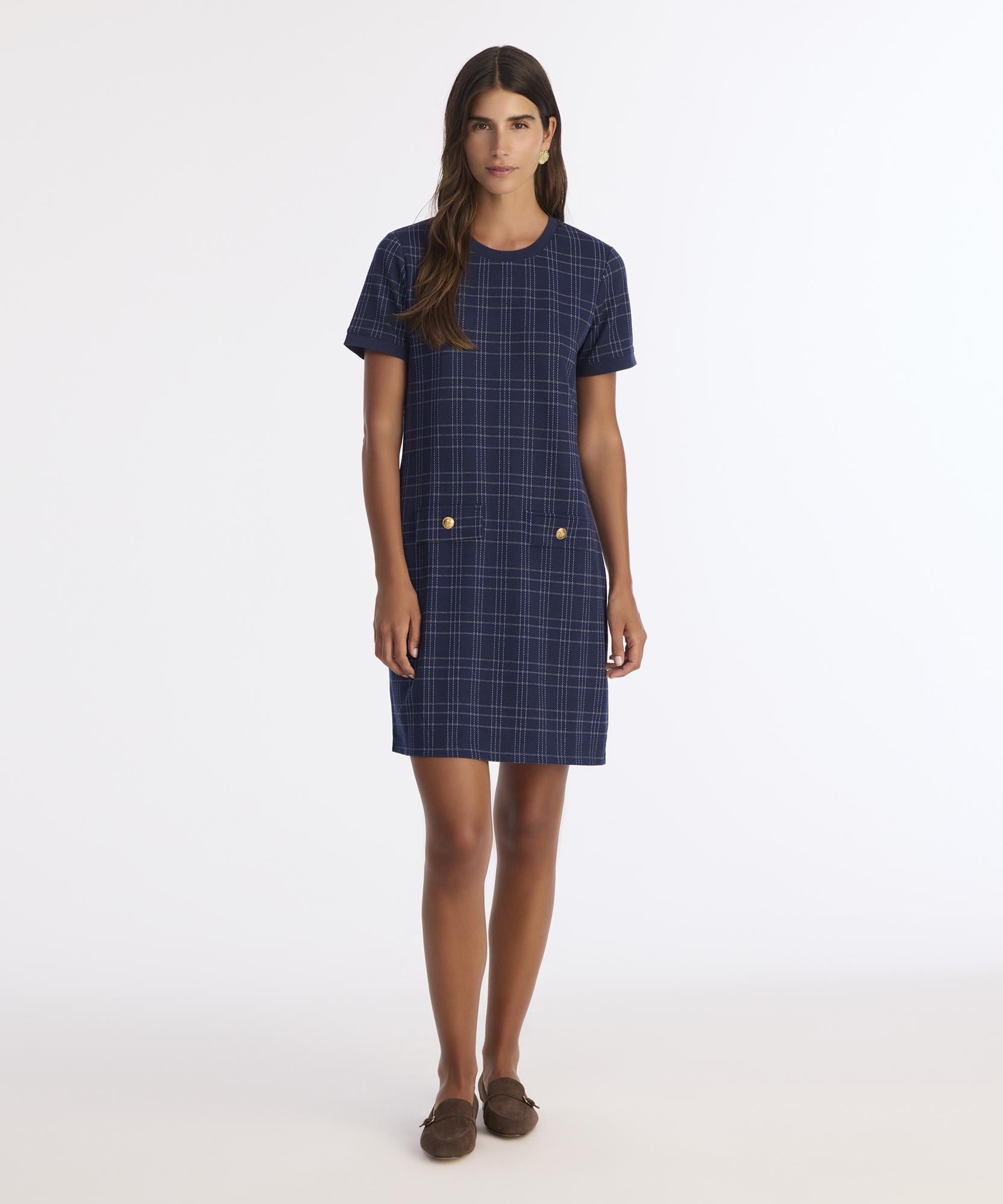 Kareli deseni ve cep üzerindeki düğme detaylarıyla klasik ama enerjik bir stil sunan bu elbise, rahat kesimiyle gün boyu konfor sağlar. Yuvarlak yaka yapısı ve kısa kollu tasarımı sayesinde farklı mevsimlerde katmanlı kullanım imkânı tanır. Kış aylarında kalın çorap, loafers ve oversize hırkayla şık bir günlük kombin oluşturulabilir. Küçük altın aksesuarlarla zarif bir dokunuş ekleyebilirsiniz.