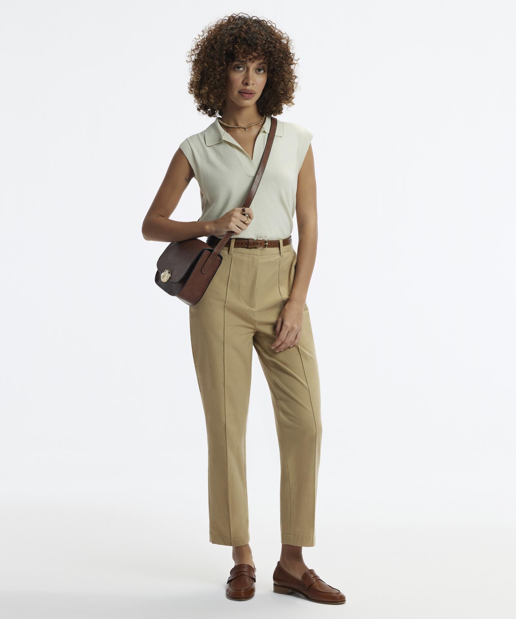 Bu zarif pantolon, kumaşın dokusundan gelen sofistike bir hava ile günün her anına uygun. Bel kesimi ve düzgün çizgileriyle, her türlü üst parça ile şık bir kombin oluşturabilirsiniz. Bluzlar, kazaklar veya ceketlerle kombine ederek farklı stiller yaratabilirsiniz.