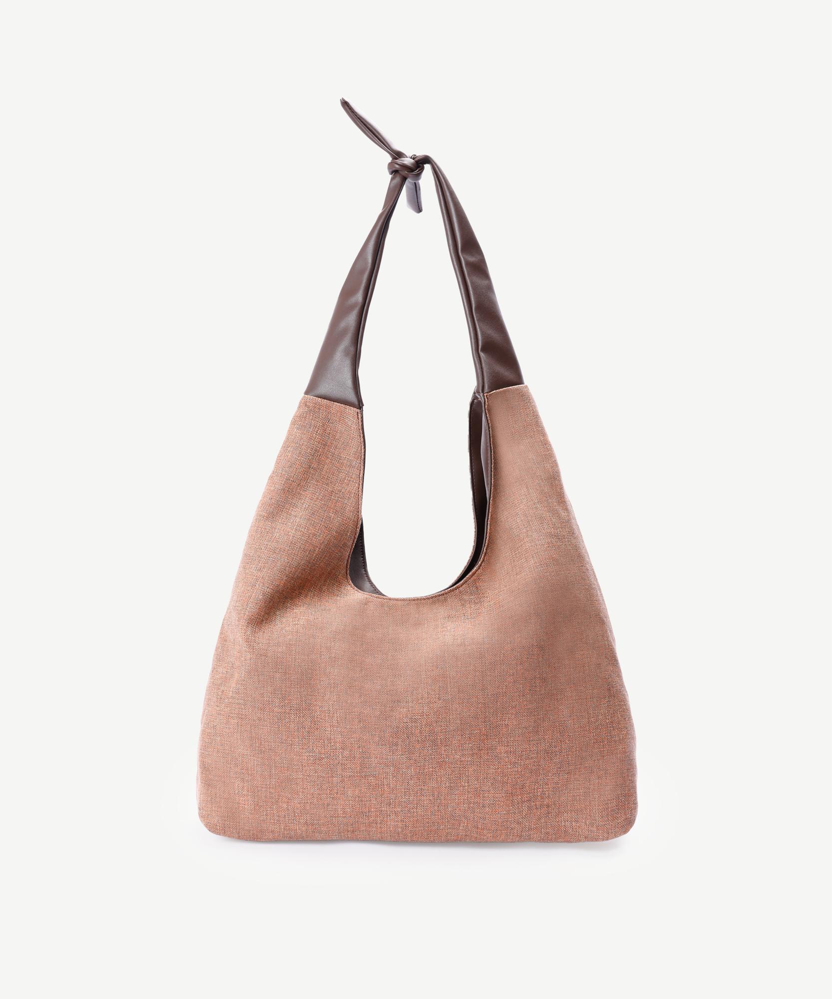 Kumaş çantanın askısındaki deri garni tasarımın modern detaylarını güçlendirirken ürünün daha dayanıklı olmasını sağlıyor. Askısındaki düğüm detayı çantanın her kombinle uyumlu çok yönlü özelliğini güçlendiriyor.