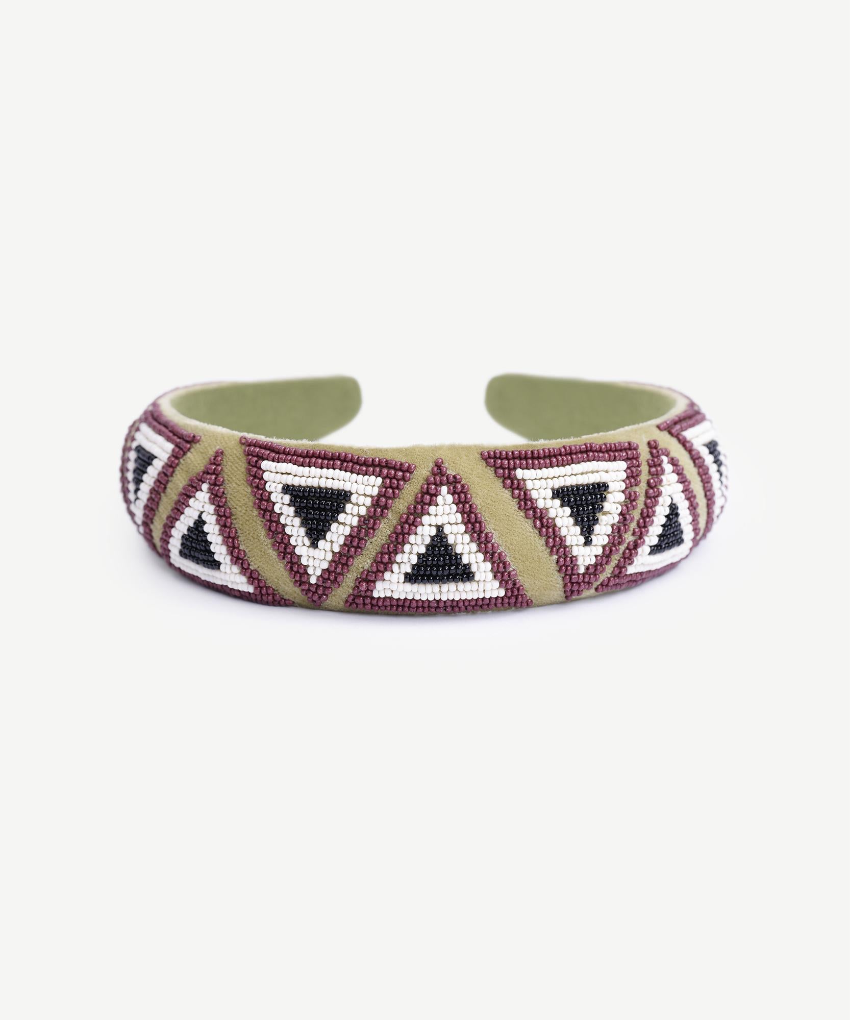 Geometrik desenli boncuk işlemeleriyle tasarlanan bu saç bandı, sıra dışı bir stilin anahtar parçasıdır. Düz saçlarda ve sade kombinlerde öne çıkar. Bohem ve modern çizgileri aynı anda taşır. Özellikle yaz kombinlerine hareket katar.