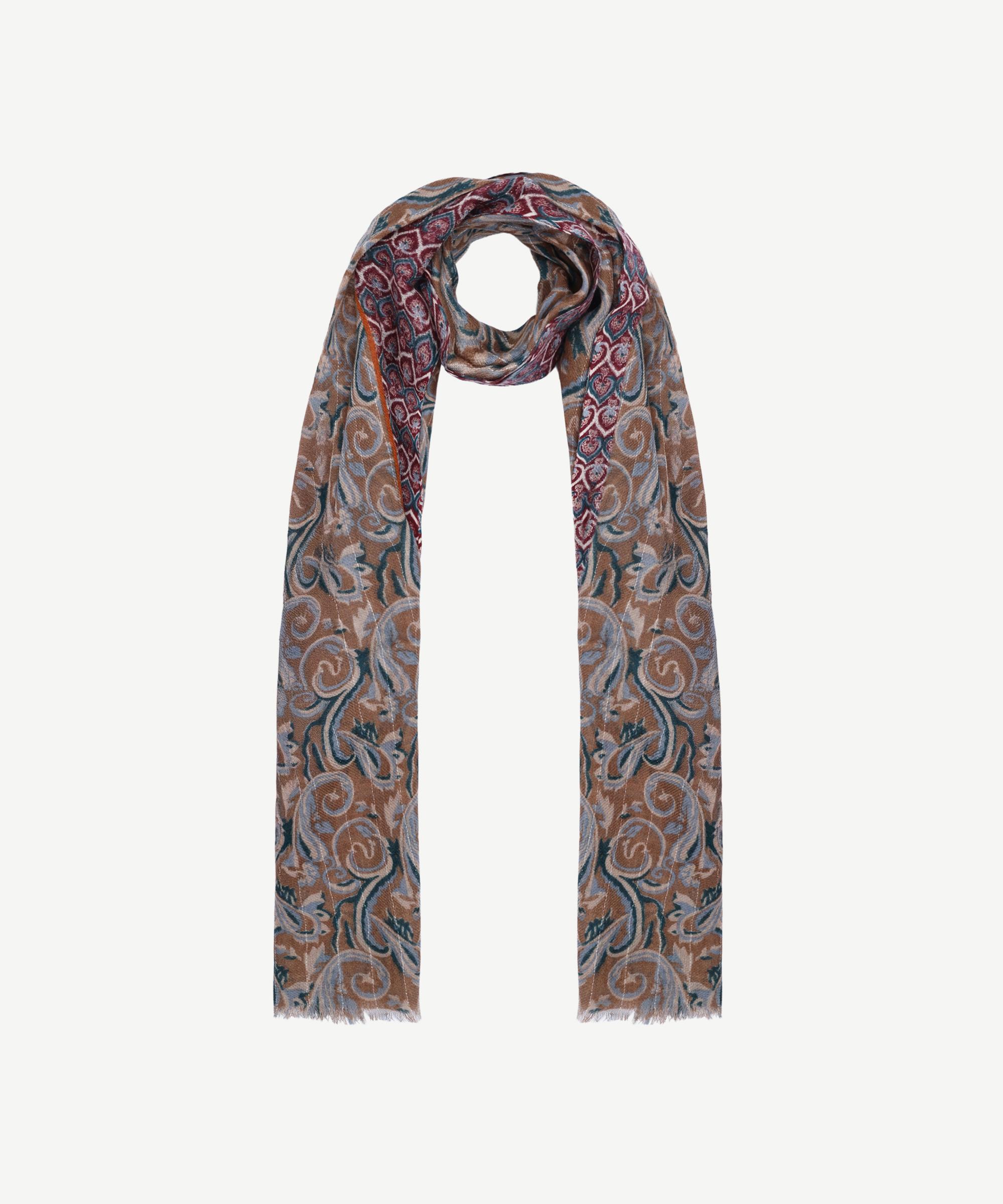 Etnik desenlerin ve zengin renk geçişlerinin öne çıktığı bu büyük ebatlı şal, kış aylarında hem stil hem de konfor sunuyor. Geniş yüzeyi sayesinde omuzlarınıza da şık bir şekilde alabilirsiniz. Özellikle sade kabanlarla kombinlenerek desenlerin güzelliği ön plana çıkarılabilir.