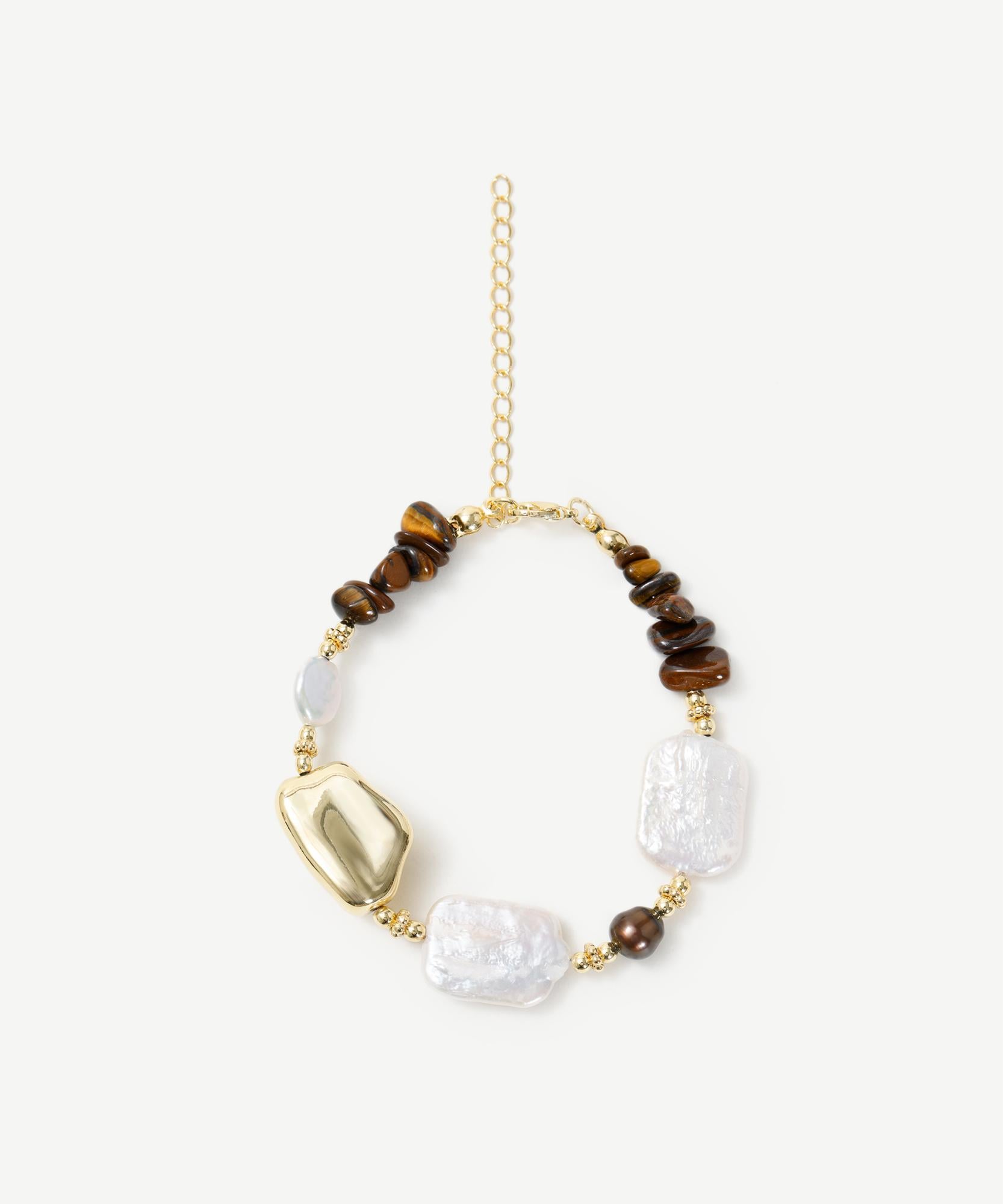 Doğal taş detaylarıyla zenginleştirilmiş bu bileklik, şıklığı ve sadeliği bir arada sunuyor. Modern tasarımı sayesinde günlük ve özel kombinlerinizi tamamlamak için ideal bir aksesuardır. Zarif ve rahat yapısıyla gün boyu konforlu bir kullanım sağlar.