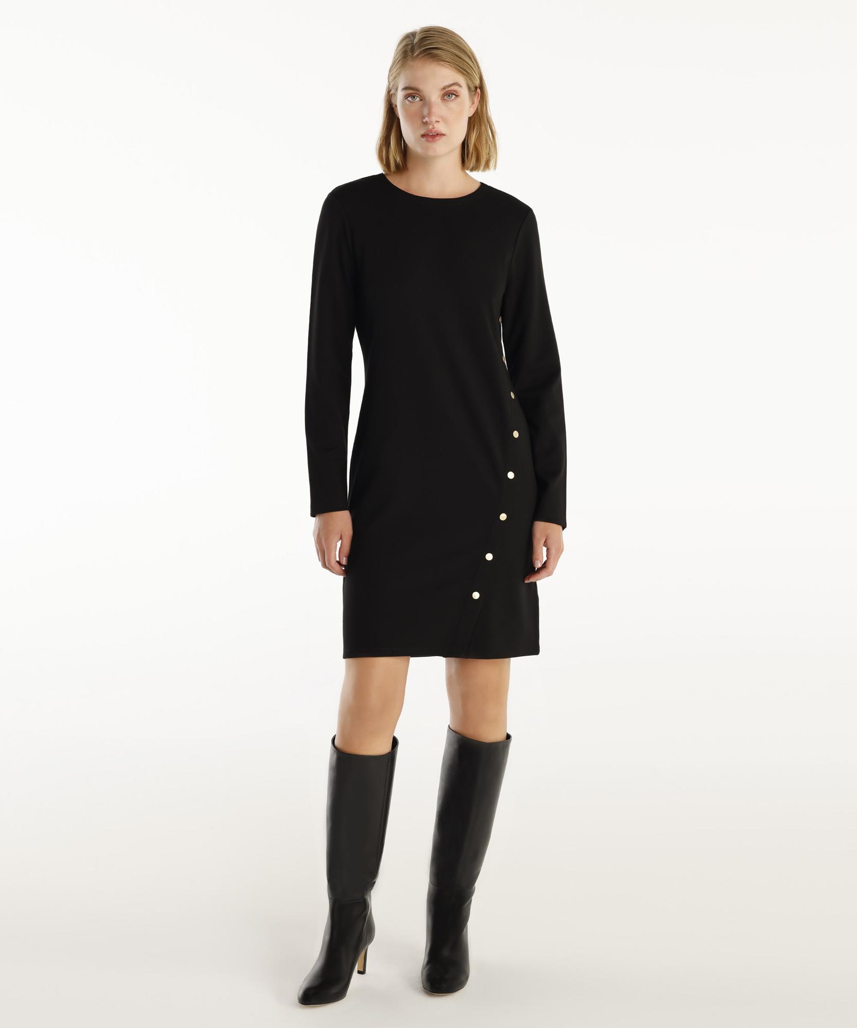 YARGICI Düğme Detaylı Uzun Kollu Bisiklet Yaka Kısa Elbise