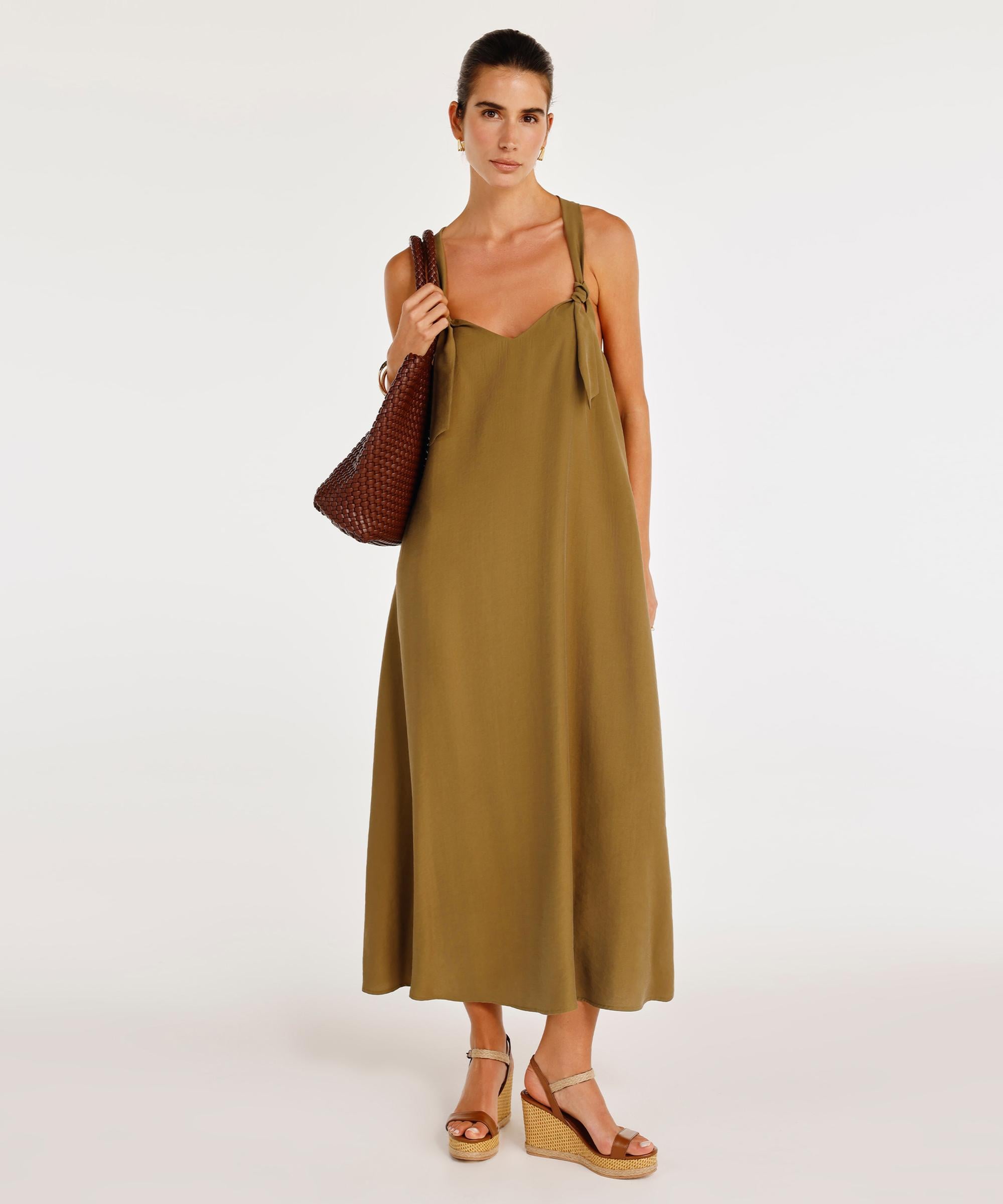 Bağcık detaylı askılarıyla özgün bir stil sunan bu elbise, salaş kesimiyle konfor ve şıklığı birleştiriyor. Yumuşak dokusu sayesinde yaz aylarında ideal bir tercih olabilir. Şık detayları ve hareketli kesimi sayesinde enerjik bir görünüm kazandırır.