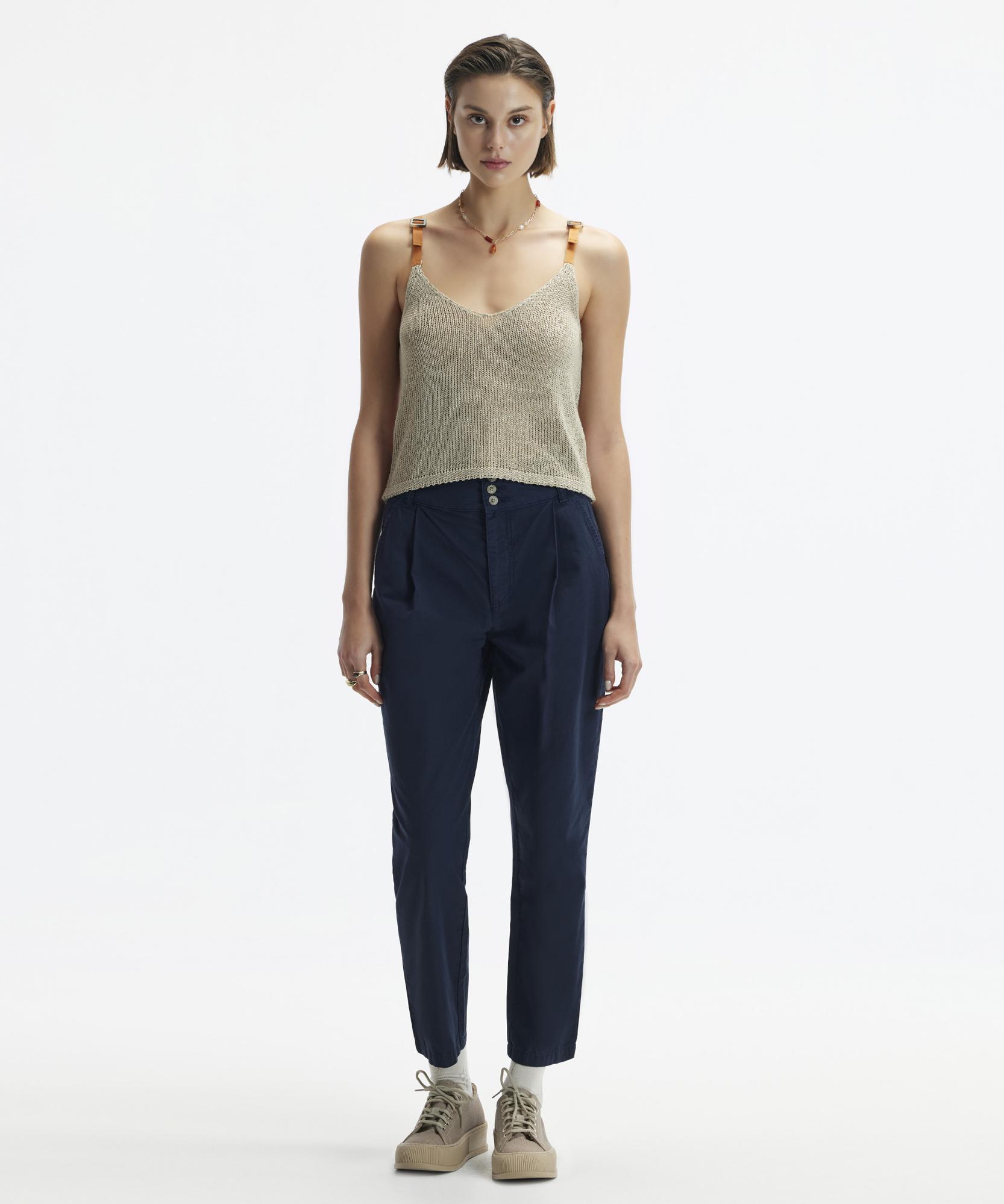 Günlük şıklığın anahtar parçası olan bu pantolon, yüksek belli tasarımı ve düğme ayrıntılarıyla göz alıyor. Hem rahat bir günlük görünüm için hem de akşam dışarı çıkarken tercih edebilirsiniz. Üzerine zarif bir bluz veya salaş bir kazakla kombine ederek farklı tarzlar yaratabilirsiniz.