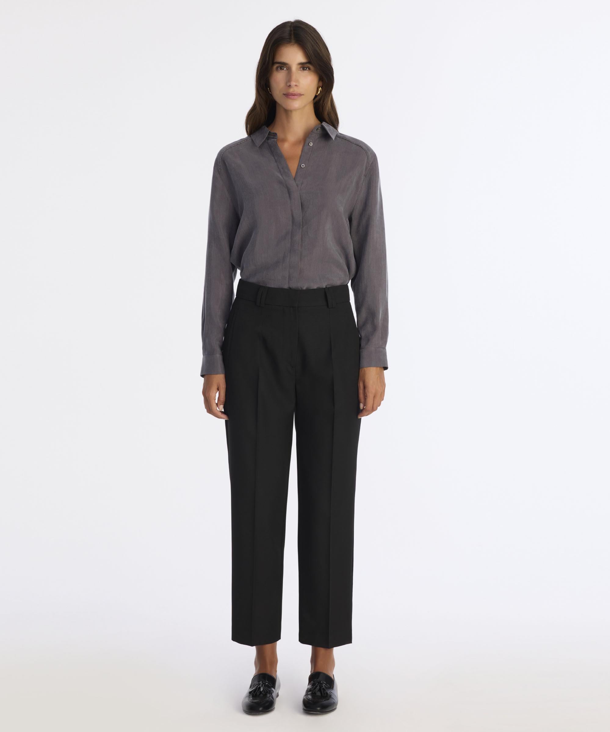 Yüksek belli ve pilili tasarımıyla dikkat çeken bu pantolon, klasik şıklığı modern bir duruşla harmanlıyor. Bel kısmındaki kemer halkaları sayesinde farklı stillerle rahatça uyum sağlar. Şık bir kazak ve kısa topuklu botlarla kombinleyerek kış sezonu için zarif bir ofis görünümü elde edebilirsiniz. Hem gündüz hem akşam kullanıma uygundur.