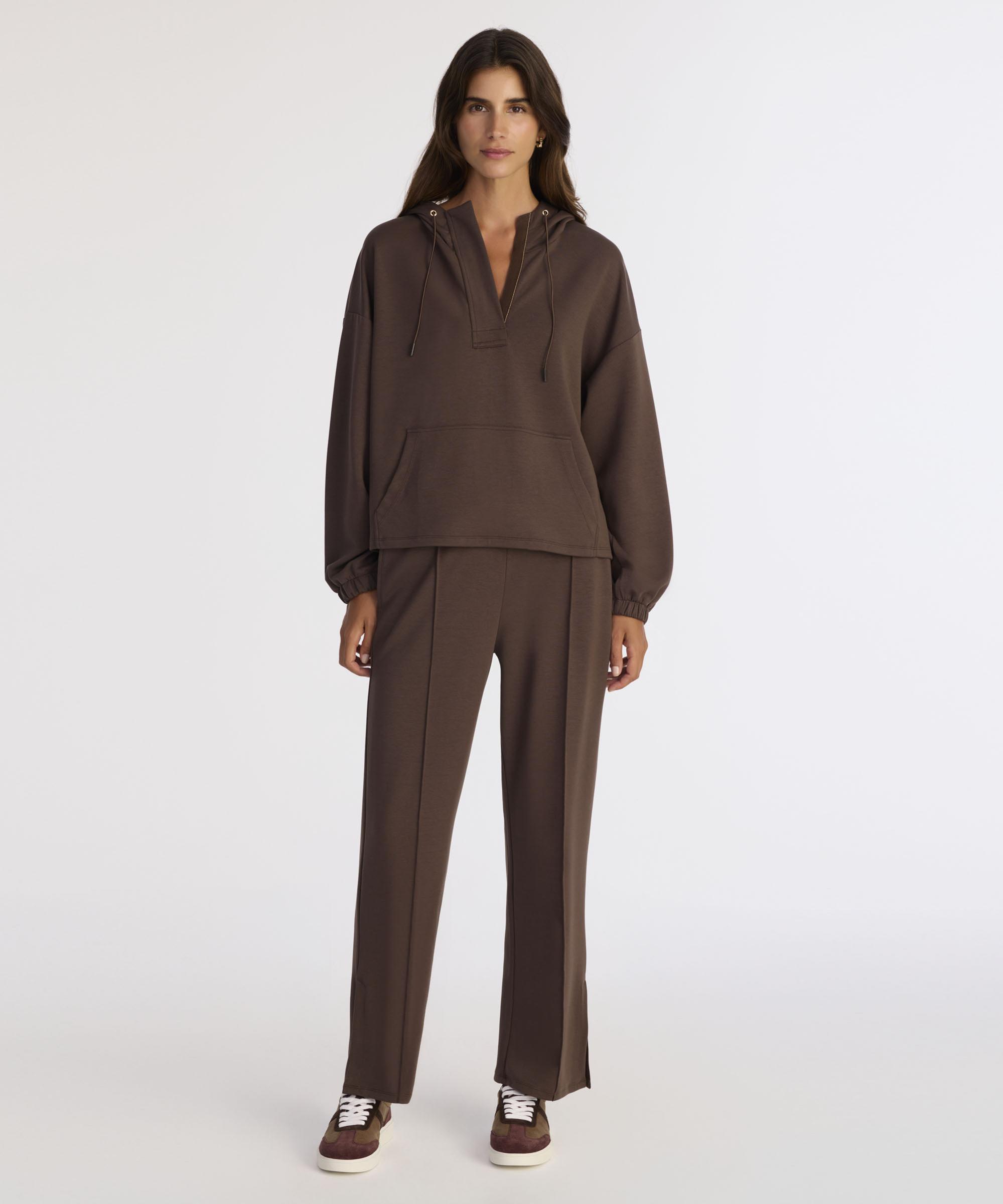 Zamansız şıklığı yansıtan bu pantolon, sade ama etkileyici çizgileriyle öne çıkıyor. Paça kısımlarındaki yırtmaç detayı, hareket özgürlüğü sağlarken modern bir dokunuş katıyor. Kalın dokulu boğazlı kazaklar ve uzun kabanlarla kombinlenerek kış stilinizi zarifçe tamamlıyor. Ofis şıklığından günlük kombinlere kadar pek çok alanda rahatlıkla kullanılabiliyor.