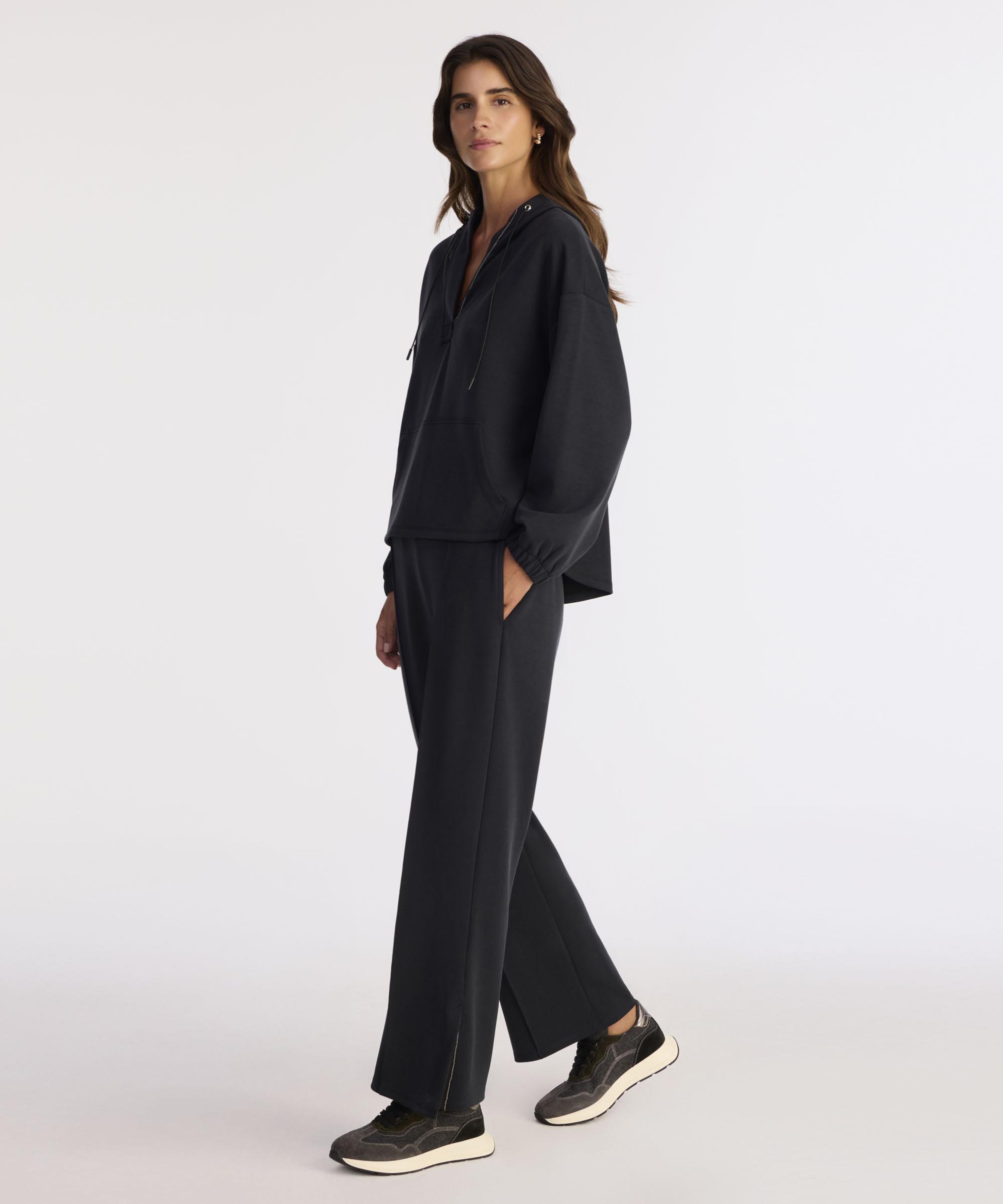 Zamansız şıklığı yansıtan bu pantolon, sade ama etkileyici çizgileriyle öne çıkıyor. Paça kısımlarındaki yırtmaç detayı, hareket özgürlüğü sağlarken modern bir dokunuş katıyor. Kalın dokulu boğazlı kazaklar ve uzun kabanlarla kombinlenerek kış stilinizi zarifçe tamamlıyor. Ofis şıklığından günlük kombinlere kadar pek çok alanda rahatlıkla kullanılabiliyor.