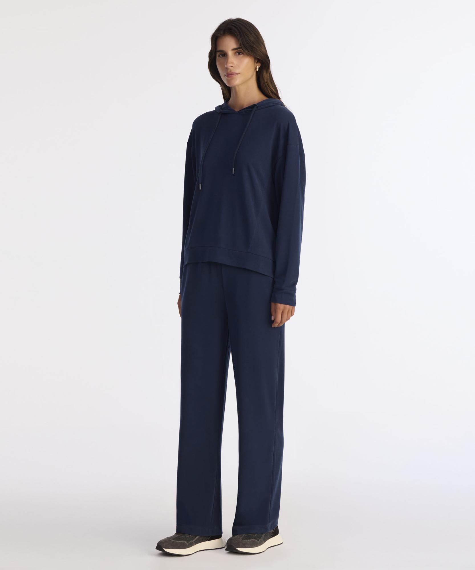 Yumuşak dokusu ve esnek lastikli beliyle gün boyu konfor sunan bu pantolon, sade ve zarif duruşuyla öne çıkıyor. Geniş paça kesimi sayesinde hem rahat hareket imkânı sağlar hem de modern bir siluet kazandırır. Kış mevsiminde oversize bir sweatshirt ve uzun kabanla kombinleyerek sıcak ve şık bir tarz oluşturabilirsiniz. Günlük stilinde rahatlığı ön planda tutanlar için ideal bir tercihtir.