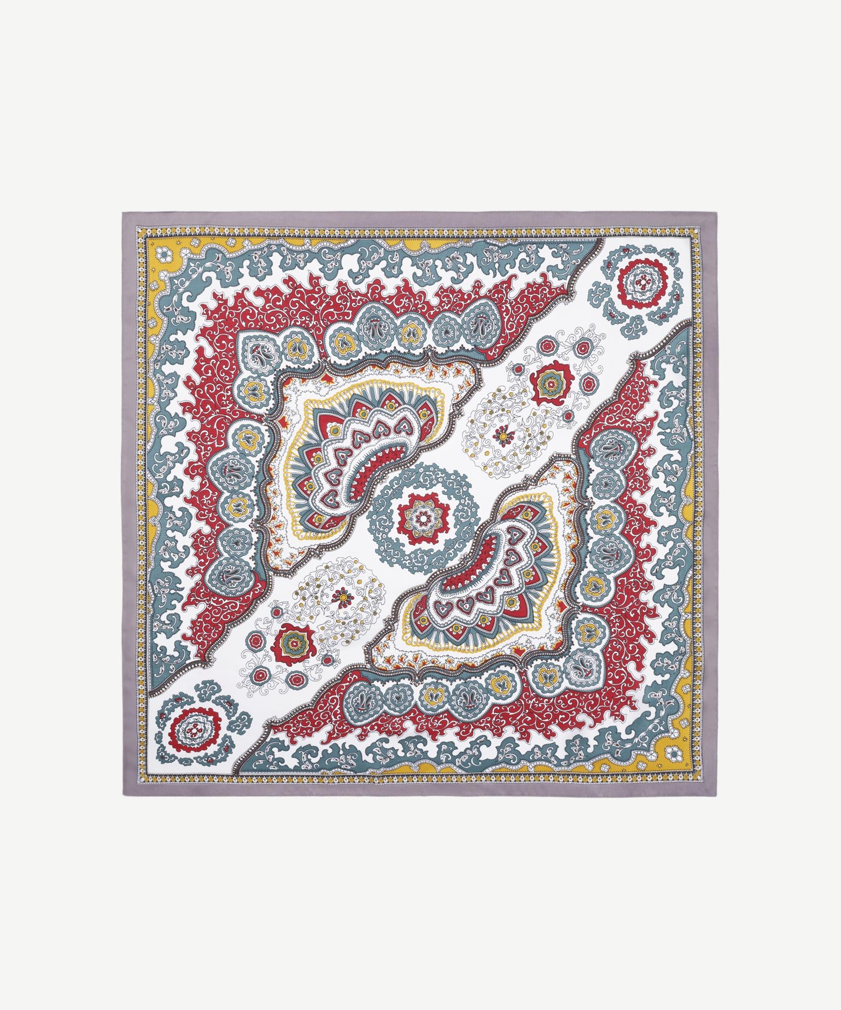 Doğu motiflerinden ilham alan bu kare fular, zengin renk paleti ve detaylı desenleriyle nostaljik bir zarafet sunuyor. Kırmızı, hardal sarısı ve petrol tonlarının uyumuyla öne çıkan tasarımı, klasik görünümlere etnik bir hava katmak isteyenler için ideal. Boyunda, saçta ya da çantada kullanılabilecek bu parça, stilinize karakter kazandırır.