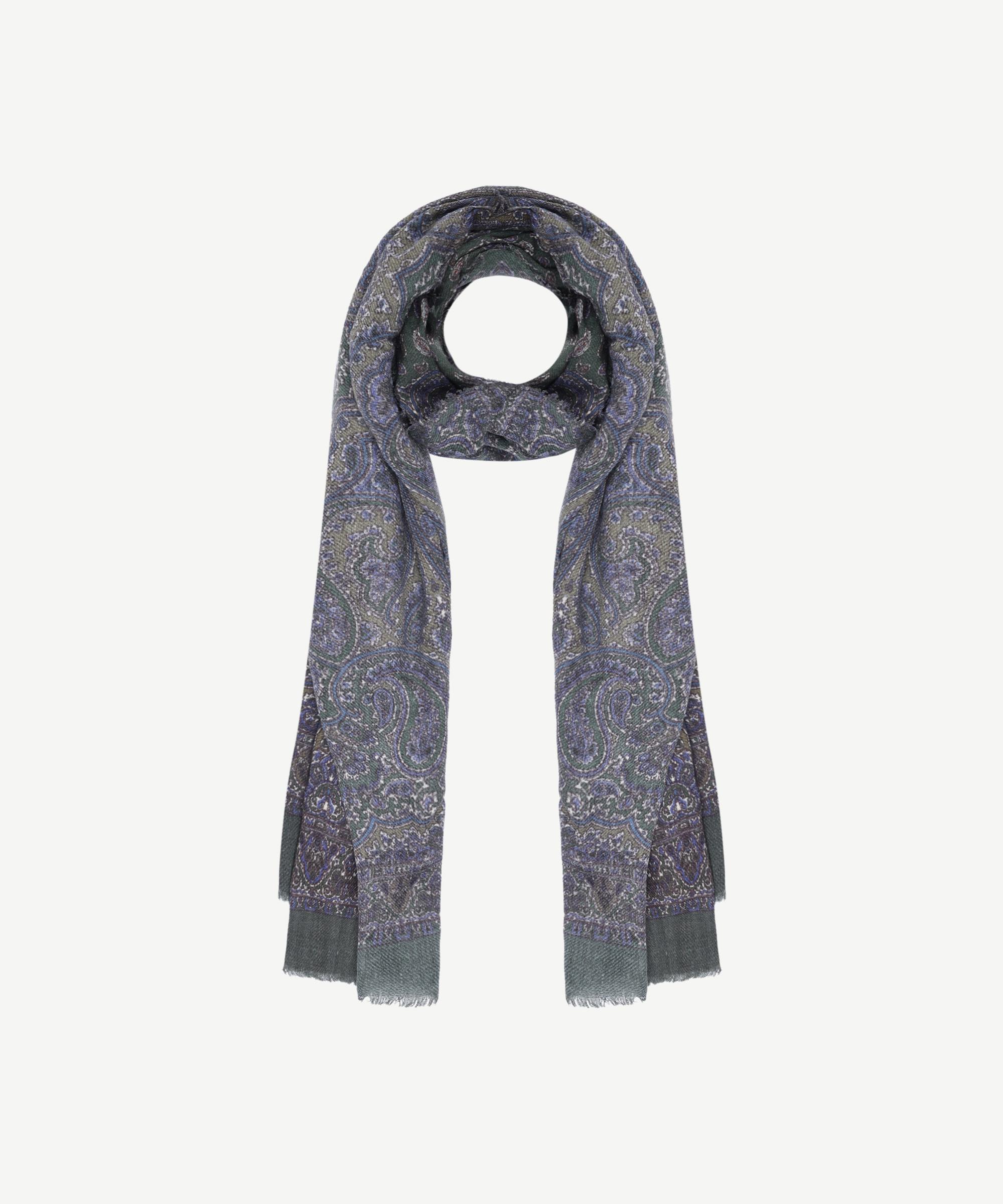 Sofistike mor ve yeşil tonlarının zarif bir uyum yakaladığı bu desenli şal, klasik paisley motifleriyle dikkat çekiyor.Yumuşak dokusu ve zengin desen yapısıyla, sade kombinlere karakter katan zamansız bir tamamlayıcı.