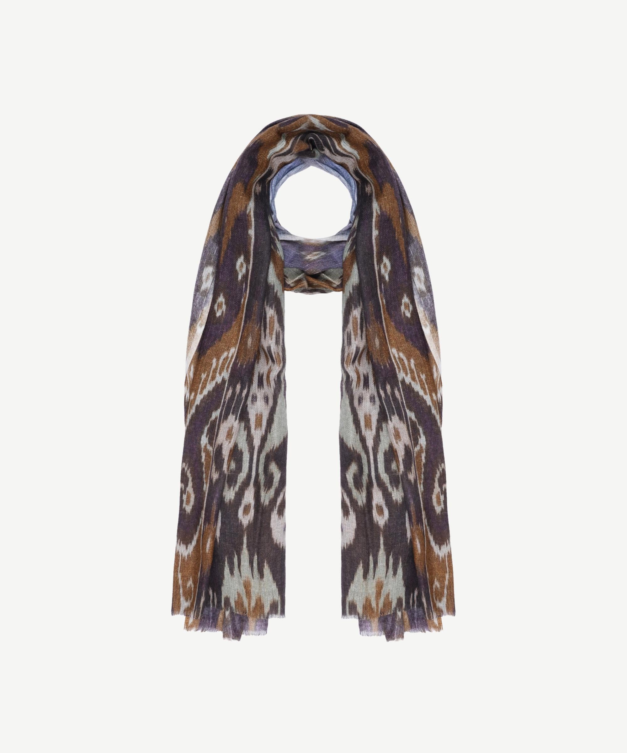 Toprak tonlarının baskın olduğu bu etnik desenli şal, stilinize sıcak ve özgün bir hava katıyor.Yumuşak dokusu sayesinde hem boyunda hem omuzda rahatlıkla kullanılabilir, desenleriyle klasik parçalara hareket kazandırır.